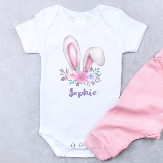 Personalized "Gentle Floral Charm" Bunny Baby Romper