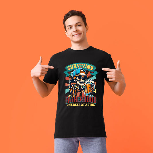 "Surviving Fatherhood One Beer at a Time" - Funny Dad T-Shirt
