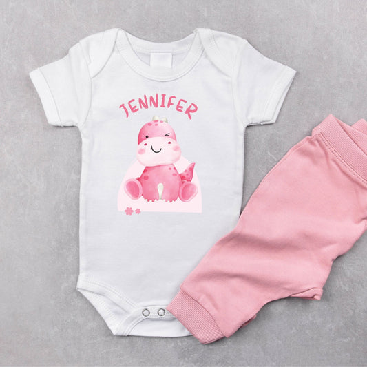 Personalized Name "Pink Dino Cuddle" Dinosaur Onesie Baby Romper
