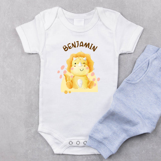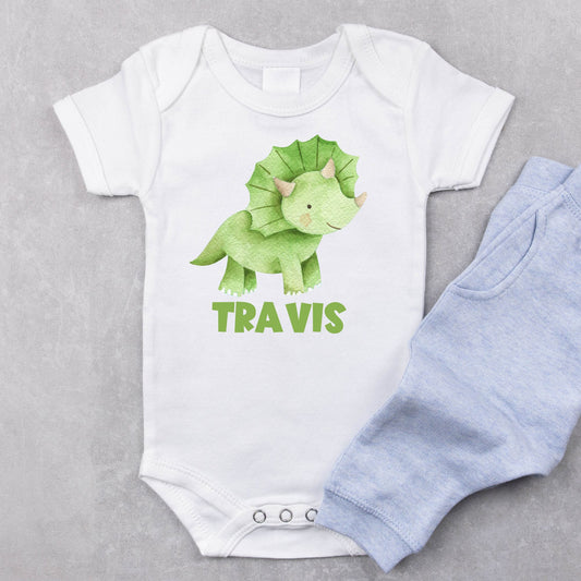 Personalized Name "Tiny Triceratops" Dinosaur Onesie Baby Romper