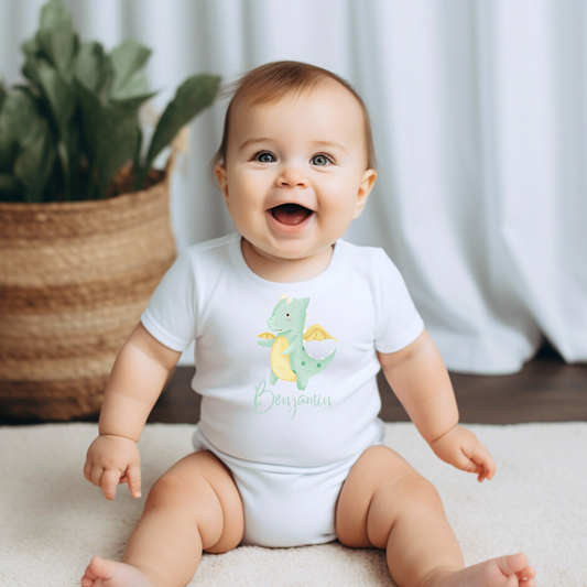Customised Name Green Baby Dragon Boy Onesie