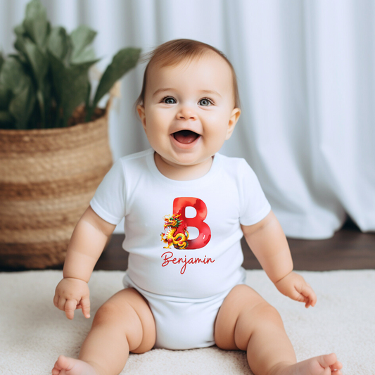 Dragon Delight: Personalized Baby Boy Onesie