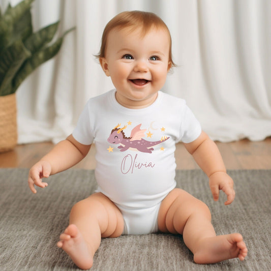 Customised Name Baby Girl Dragon Onesie