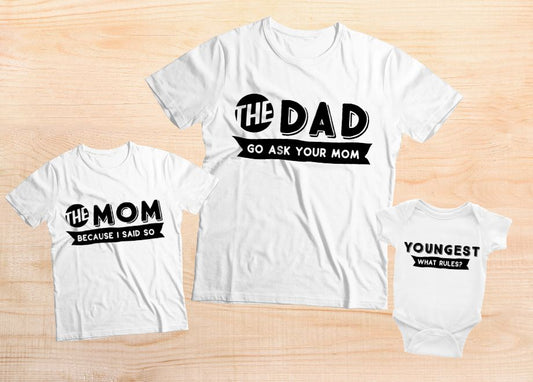 Show off your family's personality with our collection of matching tees featuring funny quotes and heartwarming sayings! From parenting humor to sibling shenanigans, there's a theme for every family. Made with comfy cotton and available in all sizes for adults, kids, and babies, these tees are perfect for everyday wear, special occasions, or creating lasting memories with a touch of humor.