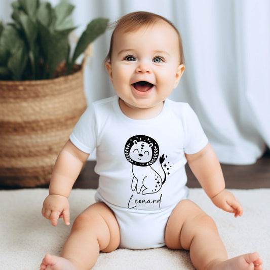 Featuring enchanting designs inspired by each zodiac sign, these rompers celebrate your little one's unique astrological personality. Personalize each romper with your baby's name for a celestial touch that makes it truly special.ย