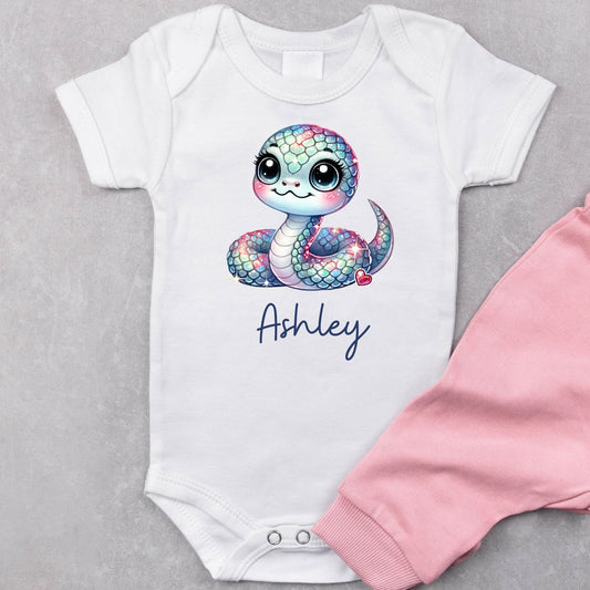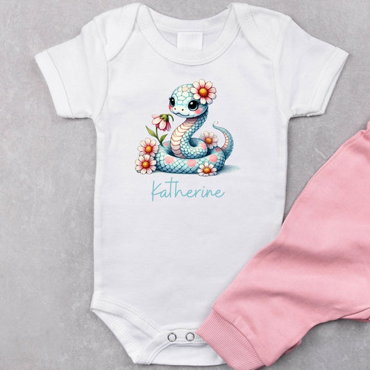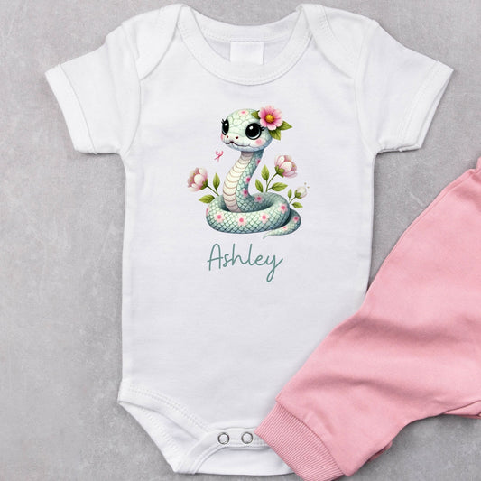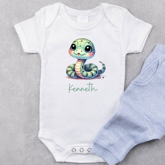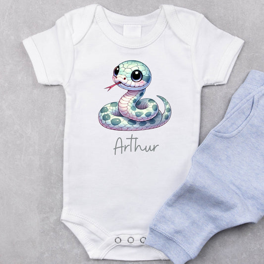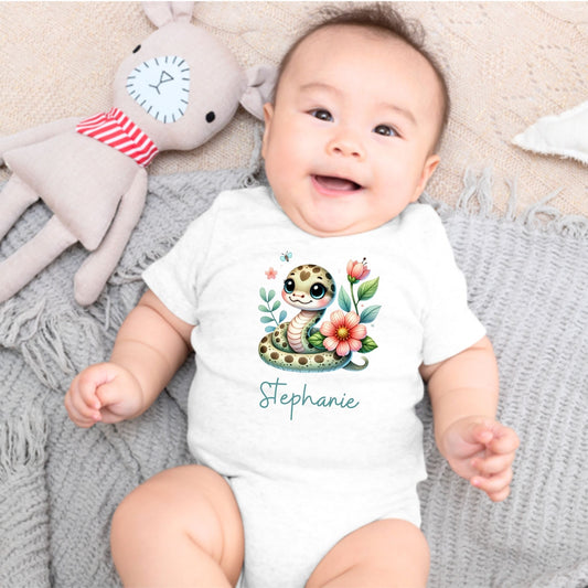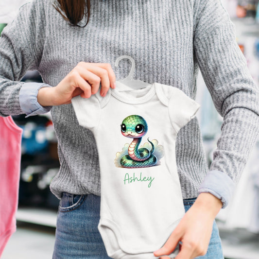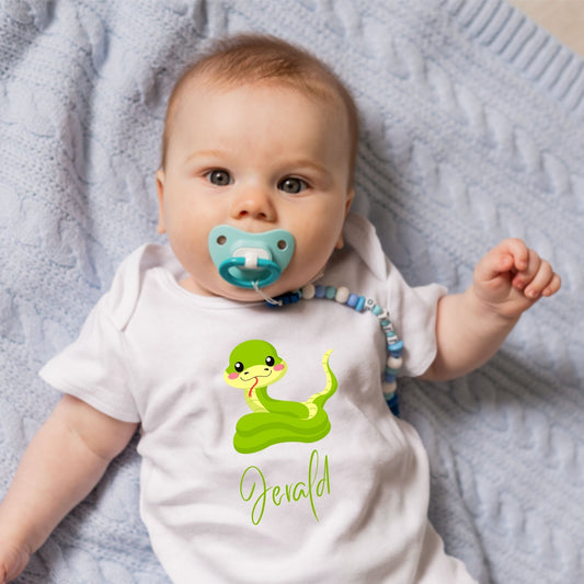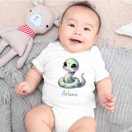 Unleash a wild charm with our Snake-Inspired Personalized Baby Onesies!