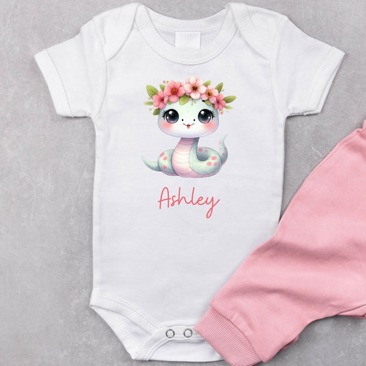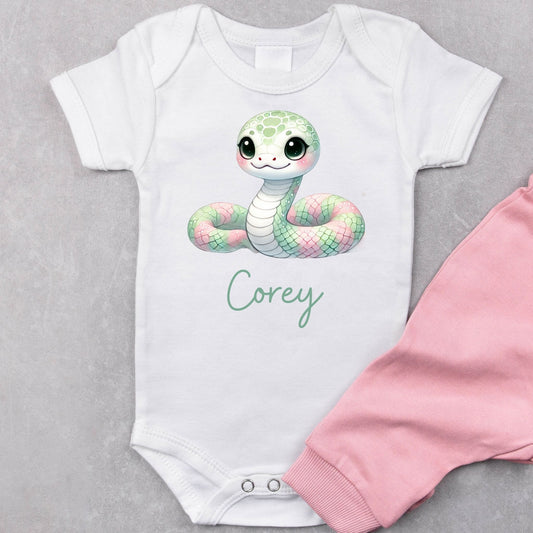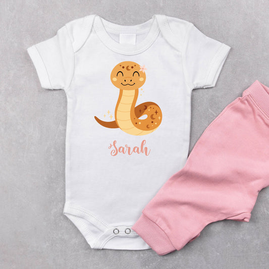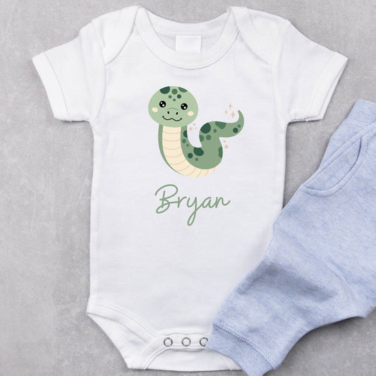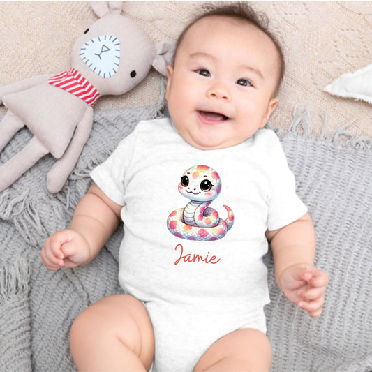 Unleash a wild charm with our Snake-Inspired Personalized Baby Onesies!