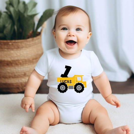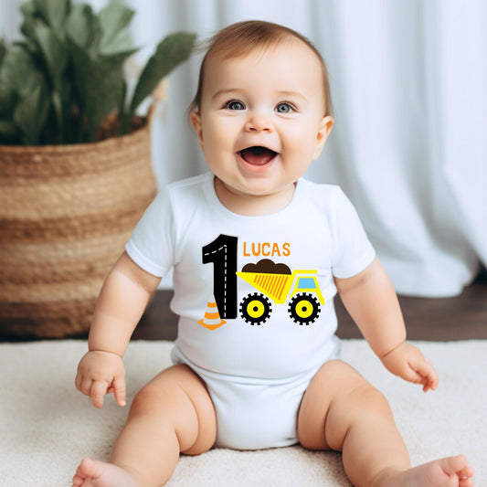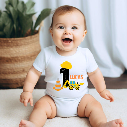 Personalized "Construction Birthday" Baby Romper / T-Shirt