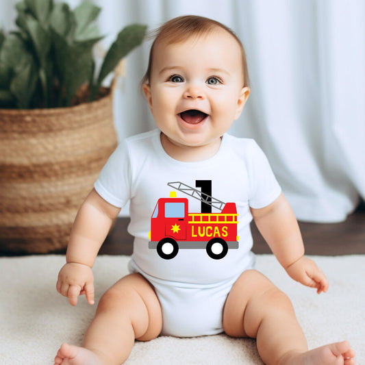 Personalized "Fire Truck" Birthday Romper / Baby T-Shirt