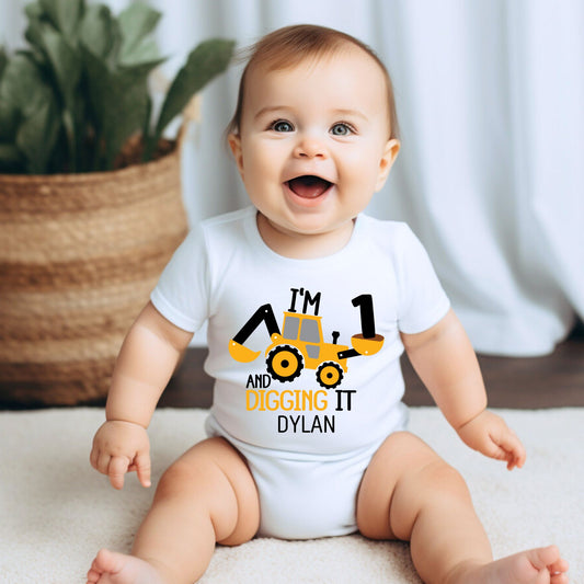 Personalized "I'm 1 And Digging It" Baby Romper / T-Shirt