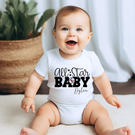 Perfect for playtime, family gatherings, and game days, these rompers are a winning addition to any baby’s wardrobe. Get ready to cheer on your mini champion in the cutest way possible!