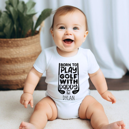 Personalized "Born To Play Golf With Daddy" Baby Romper