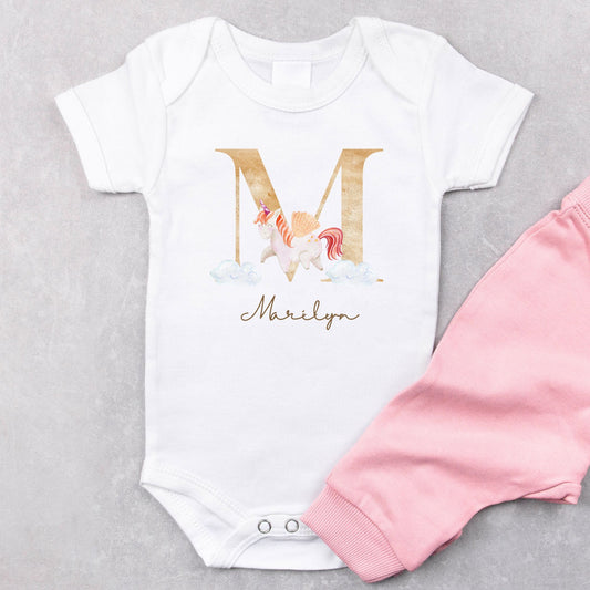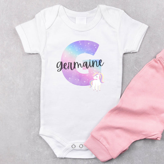 Personalized "Alphabet Charm" Unicorn Onesie Baby Romper