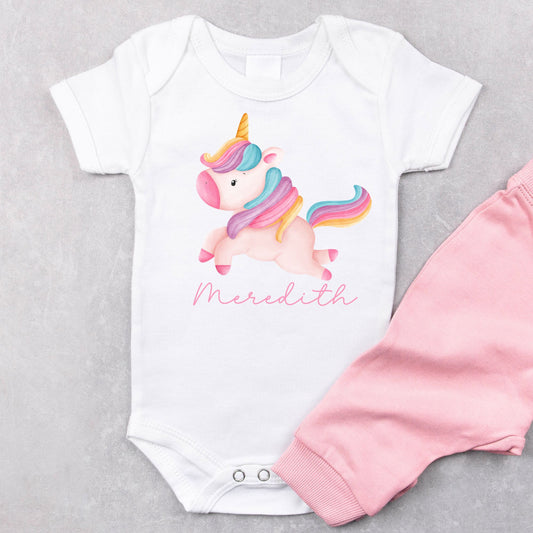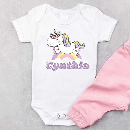 Personalized "Unicorn and Rainbow Delight" Unicorn Onesie Baby Romper