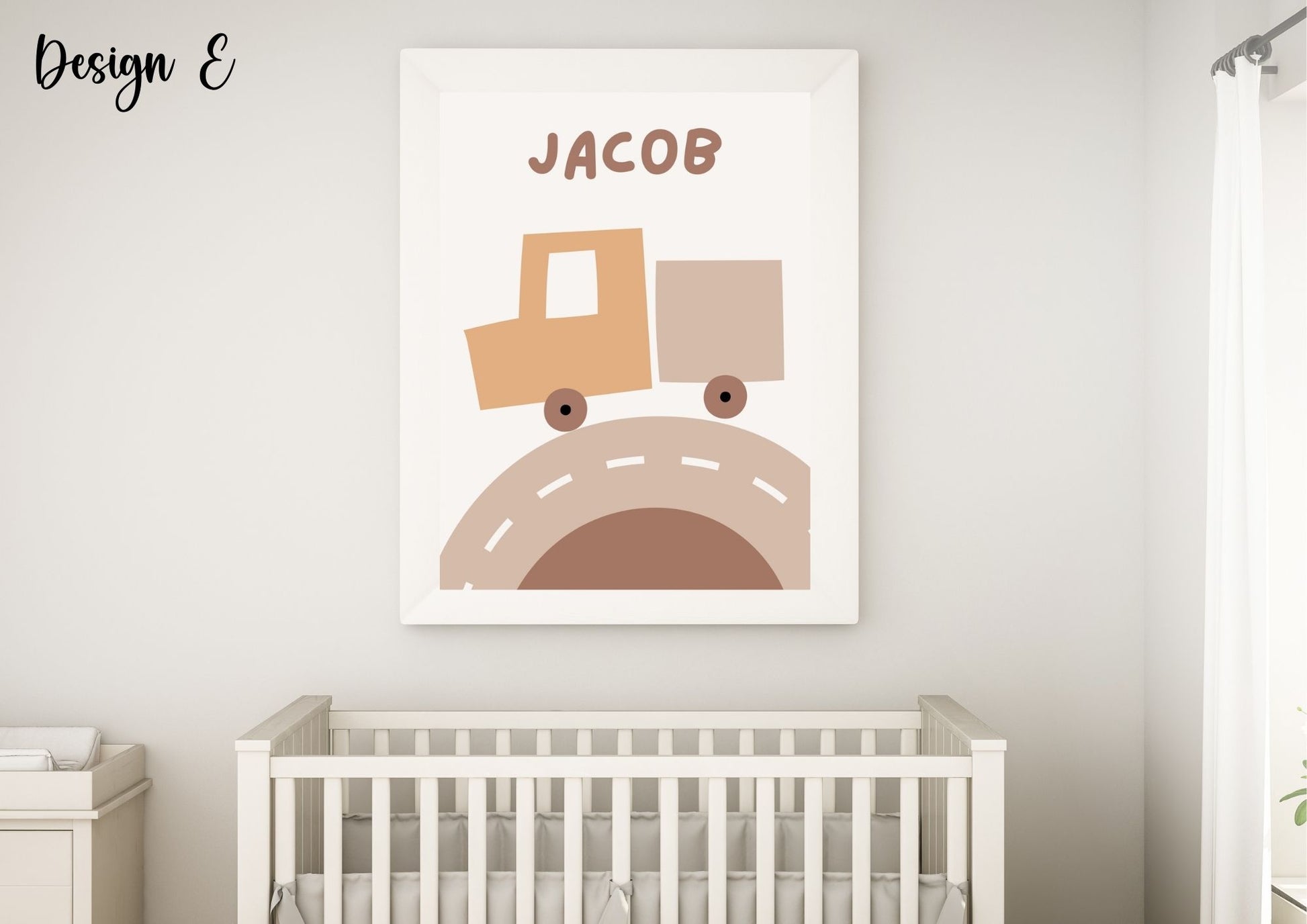 Let your little explorer set sail on a journey of imagination with the "Adventure Awaits" poster! This delightful design features a collection of adorable transport vehicles, each showcasing your baby's name proudly above it. From a cheerful excavator to a friendly boat, this poster sparks curiosity and a love for adventure.