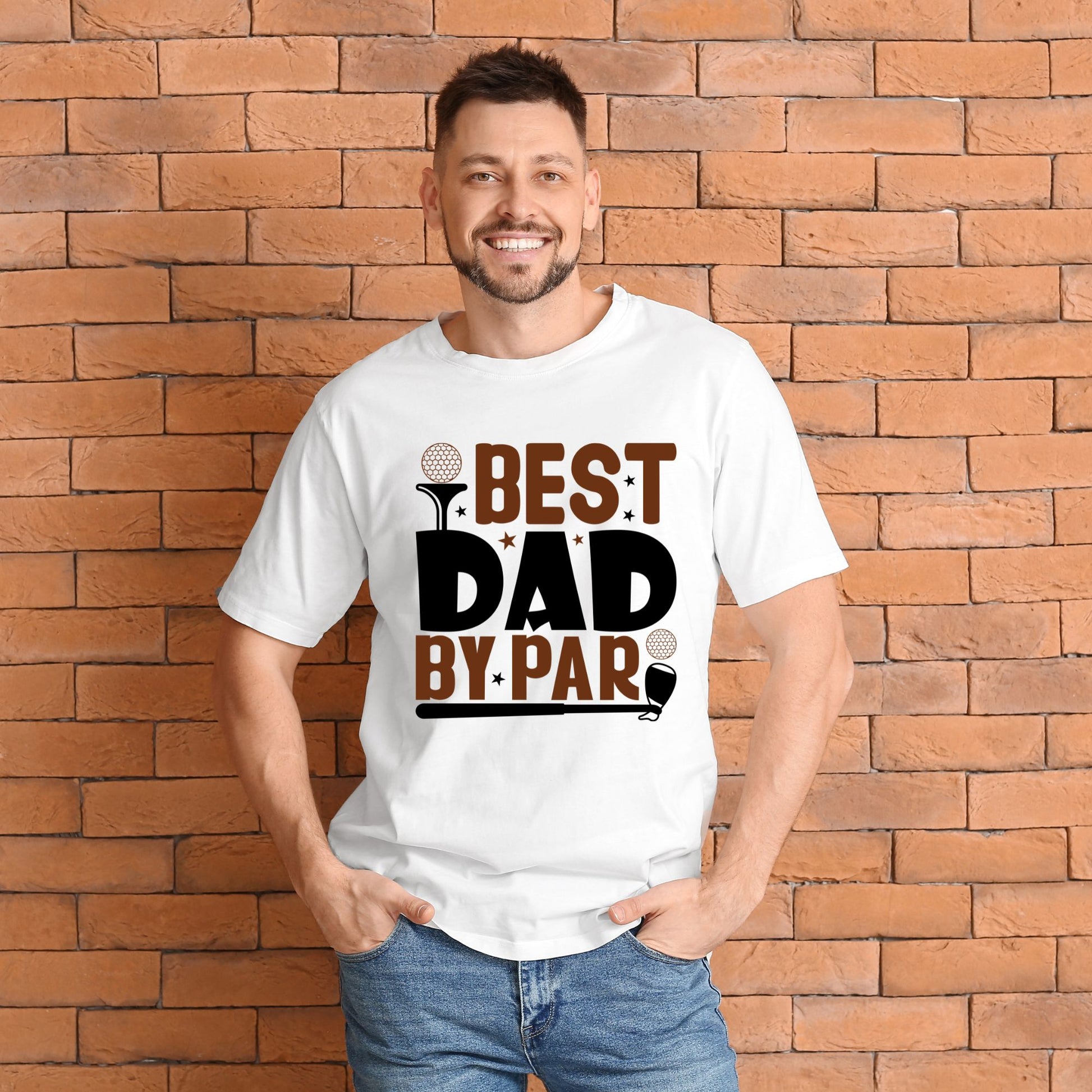 Elevate your dad game with our “Best Dad by Par” tee. Crafted from soft, breathable cotton, this white shirt features a striking black silhouette of a golf ball above the bold text. Whether you’re hitting the greens or just enjoying a casual day out, this tee combines comfort and style. Show off your love for golf and fatherhood in one swing! 🏌️♂️👕