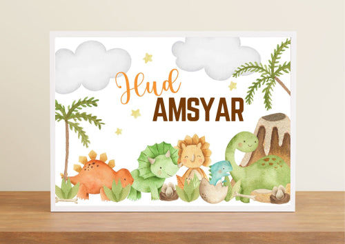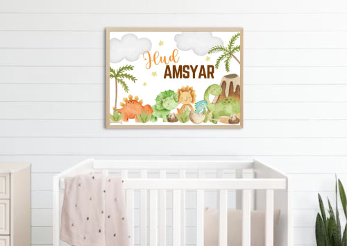 Unleash your little one's inner paleontologist with this adorable dinosaur poster! Featuring a vibrant scene of playful baby dinos, it's the perfect way to add a prehistoric touch to any nursery.