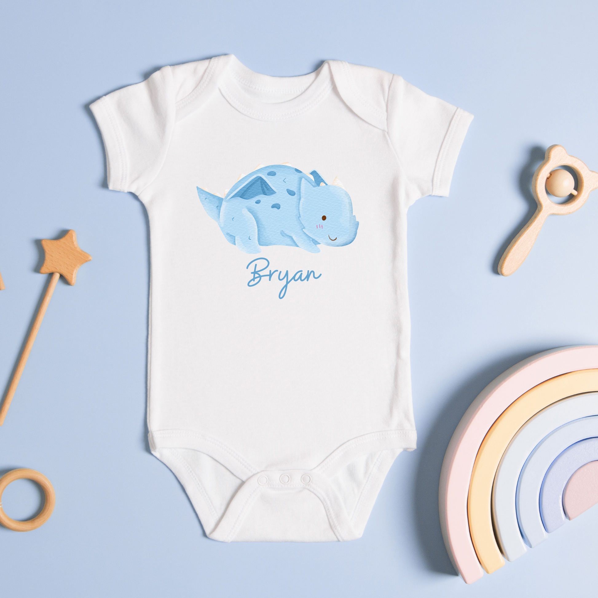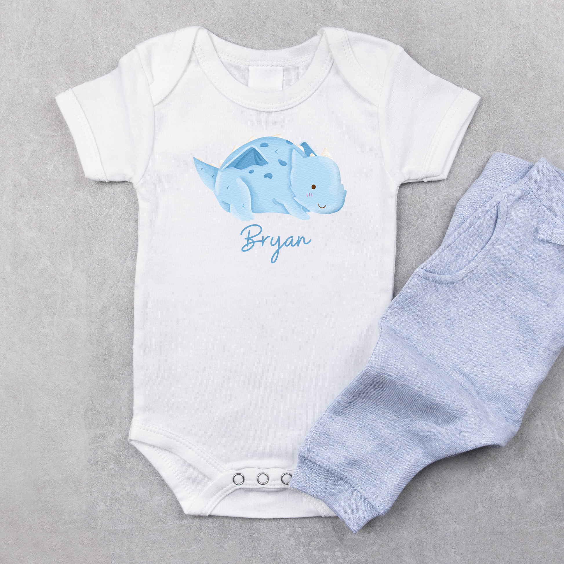 Customised Name Baby Blue Dragon Baby Romper