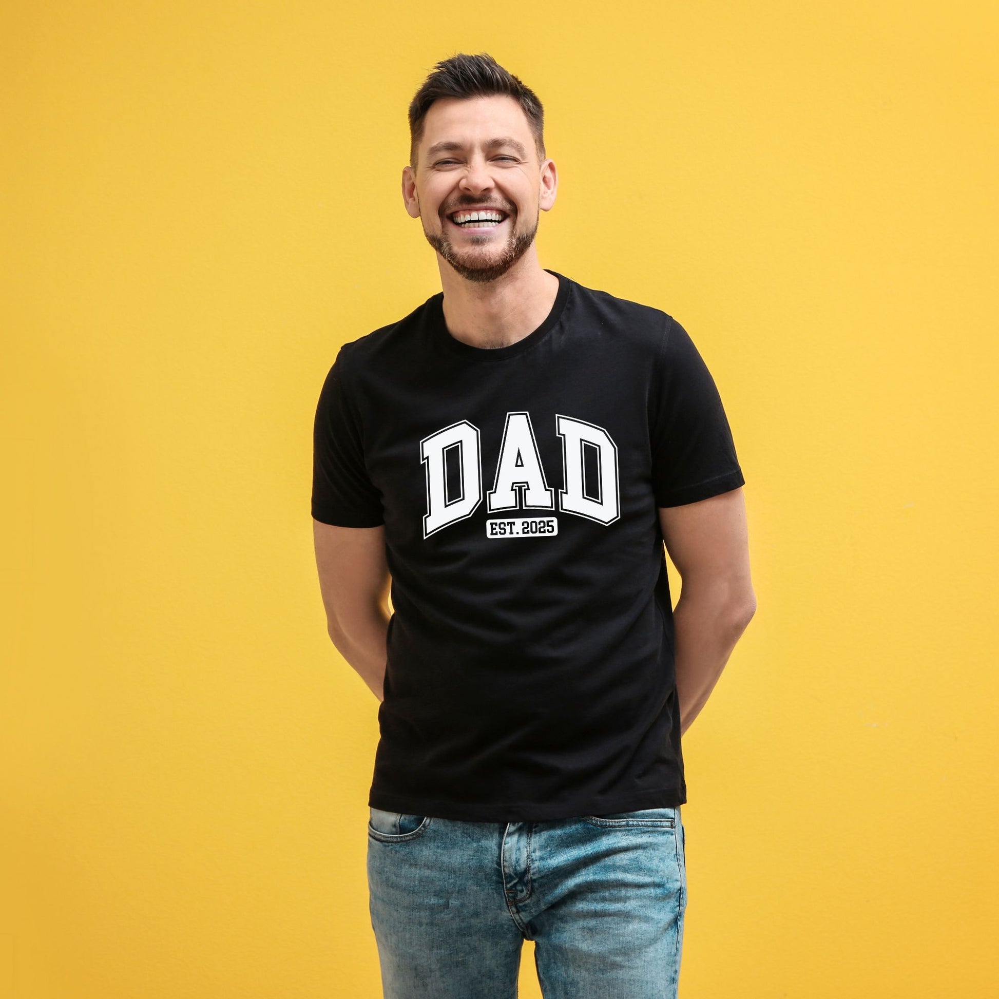 Celebrate the new dad in style with our "Dad Est. 2025" Dad Shirt! This short-sleeved t-shirt is the perfect gift for Father's Day, especially for those welcoming their first child this year. Available in both classic white and sleek black, this shirt is made from premium cotton, ensuring comfort and durability for everyday wear.