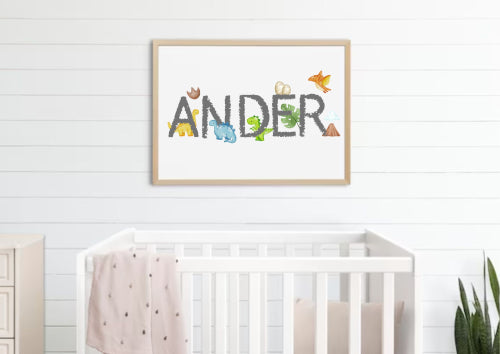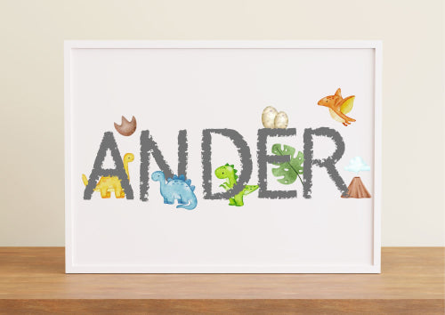 Dino Custom Name Baby Poster - Nursery Wall Decor