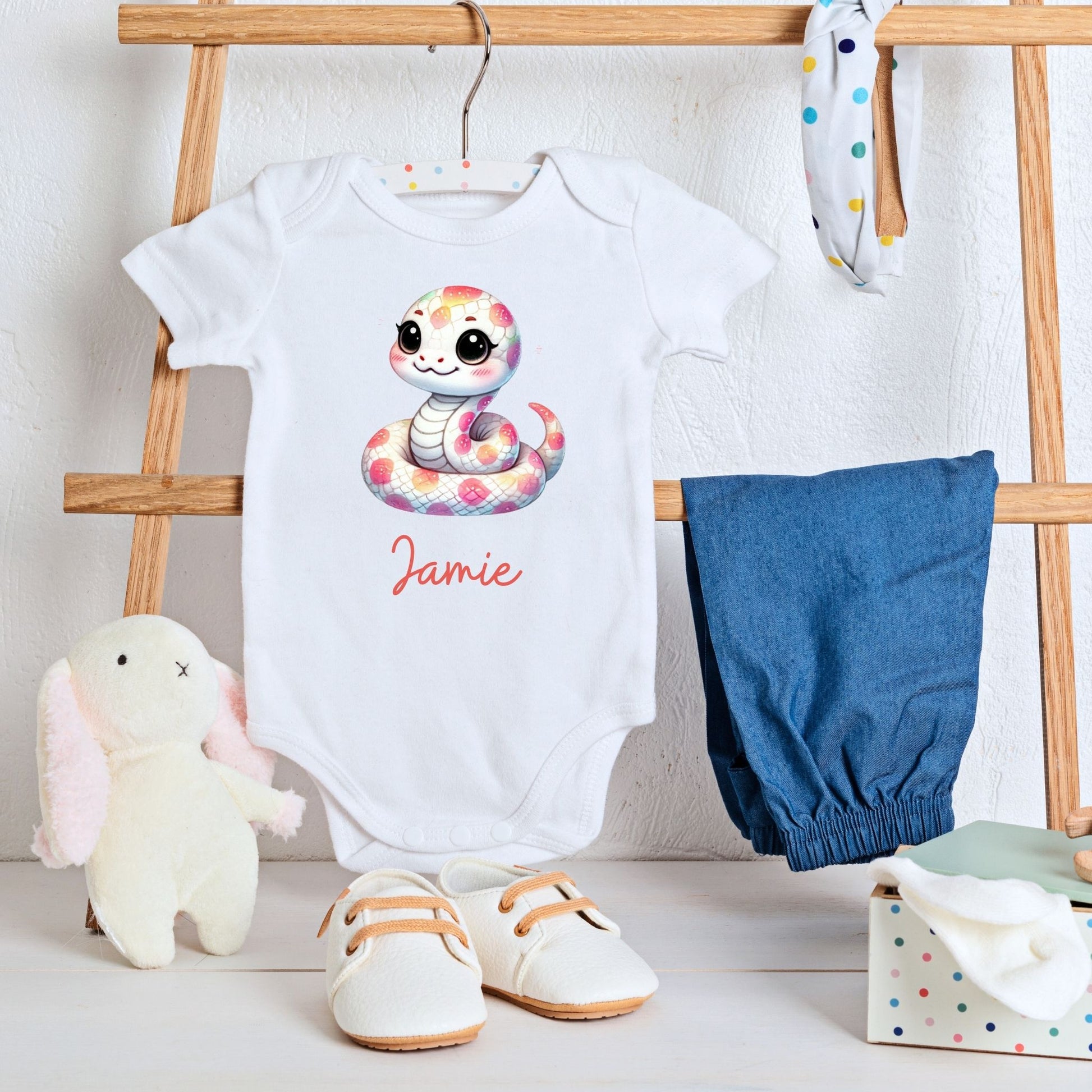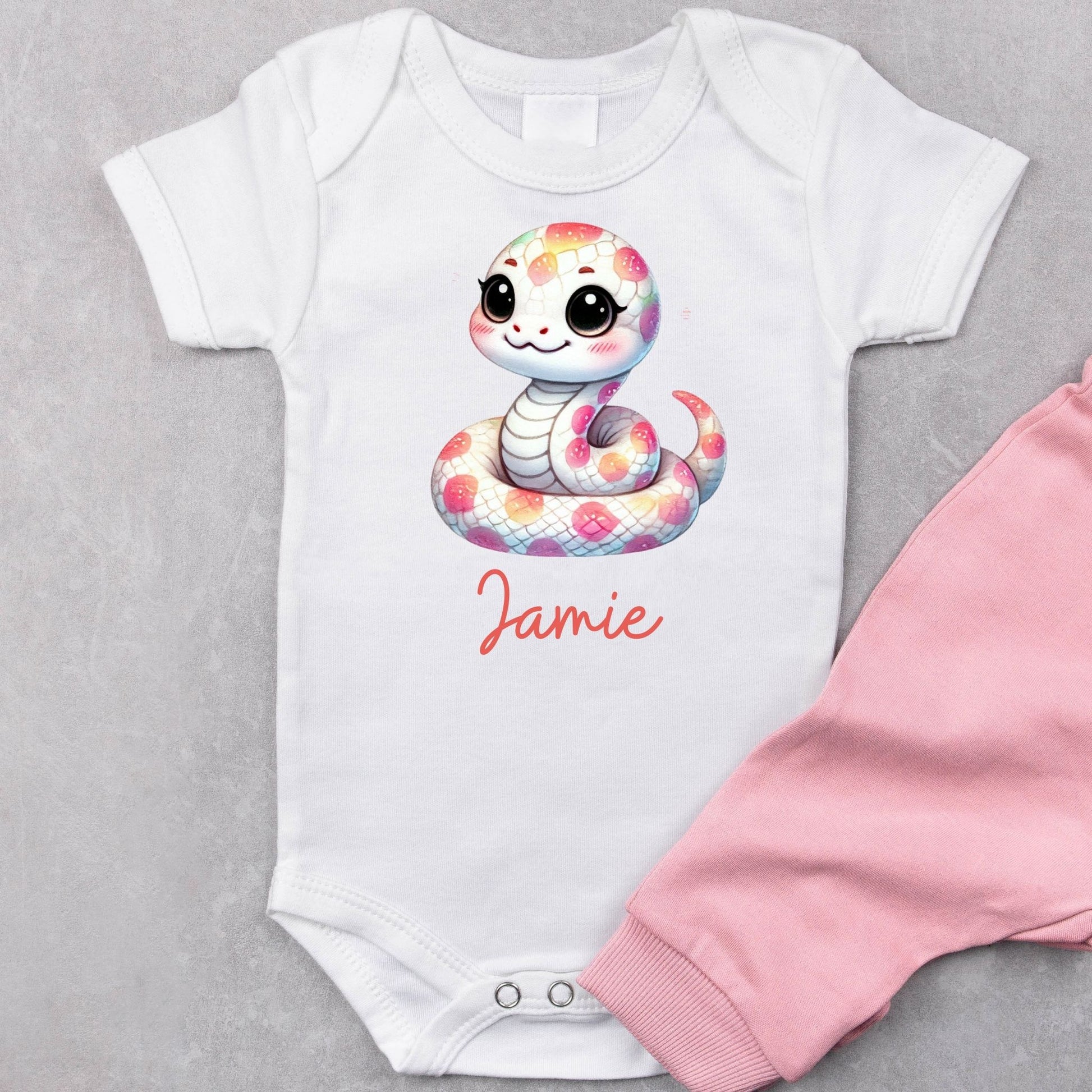 This personalized baby romper features a playful snake design that’s sure to capture everyone’s attention.