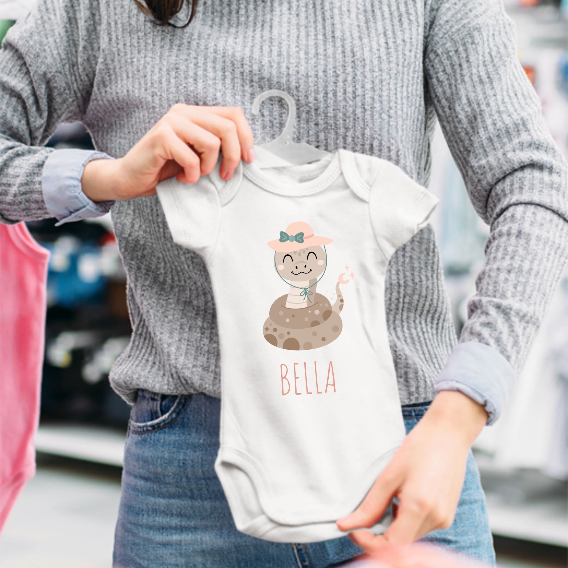 Featuring a whimsical snake design and the baby’s name, this romper makes for a standout gift that will delight new parents. Ideal for any special occasion, from baby showers to birthdays, it’s sure to be a favorite among family and friends.