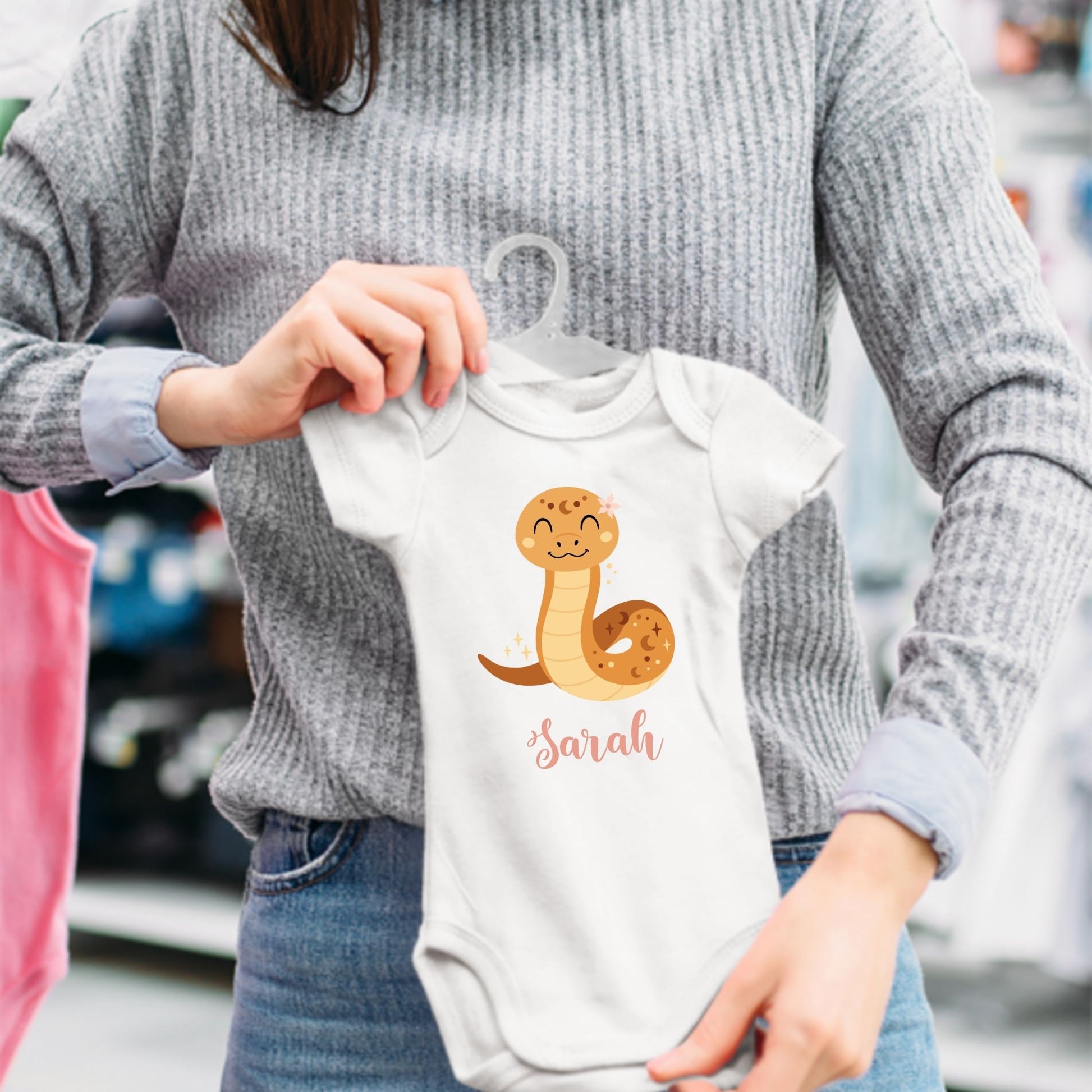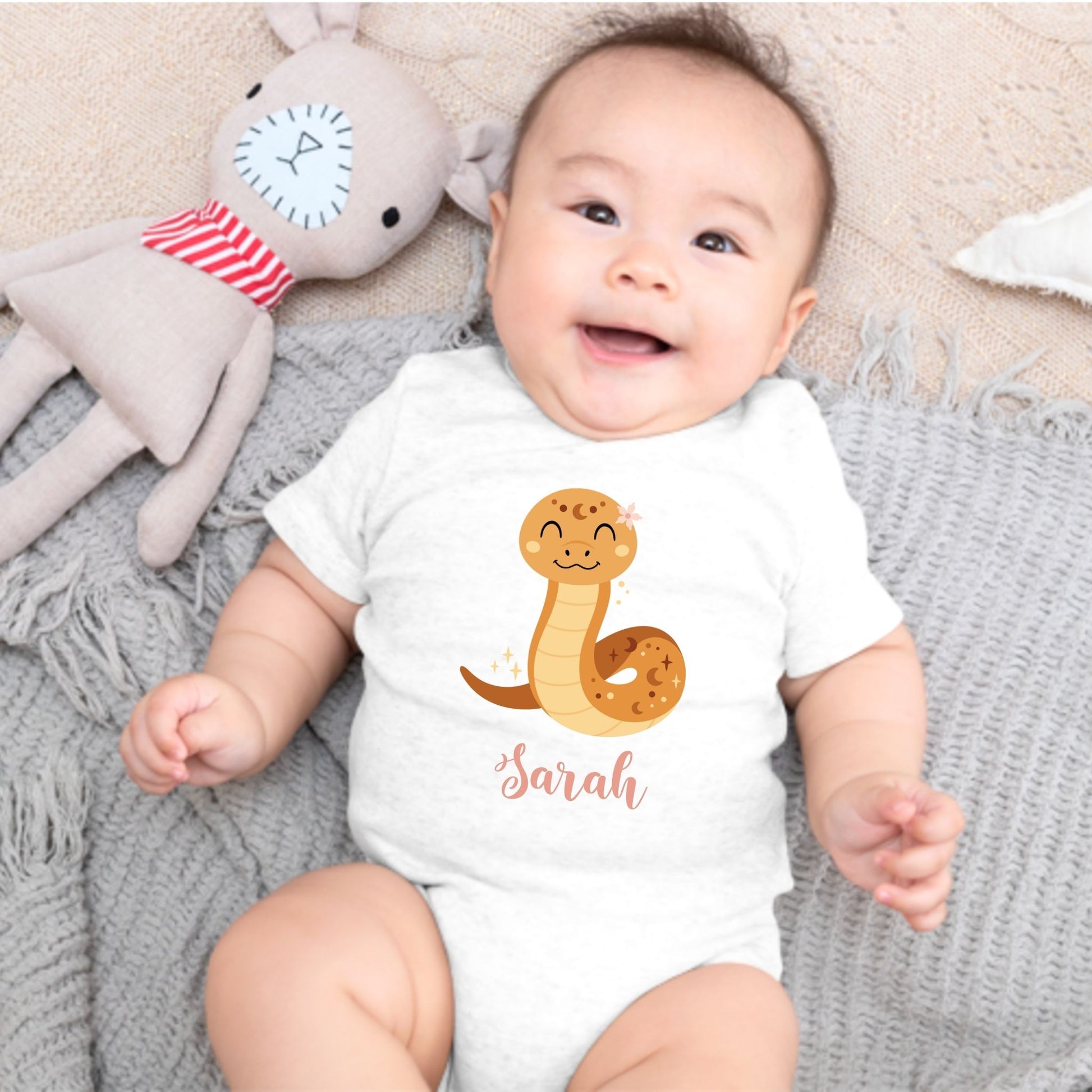 This charming personalized baby romper is a must-have for any little girl born in the Year of the Snake. With a cute snake design and her name added for that extra special touch, this romper is an ideal gift for baby showers, birthdays, or any occasion worth celebrating. It’s a playful and unique way to honor your little one’s personality and milestones.