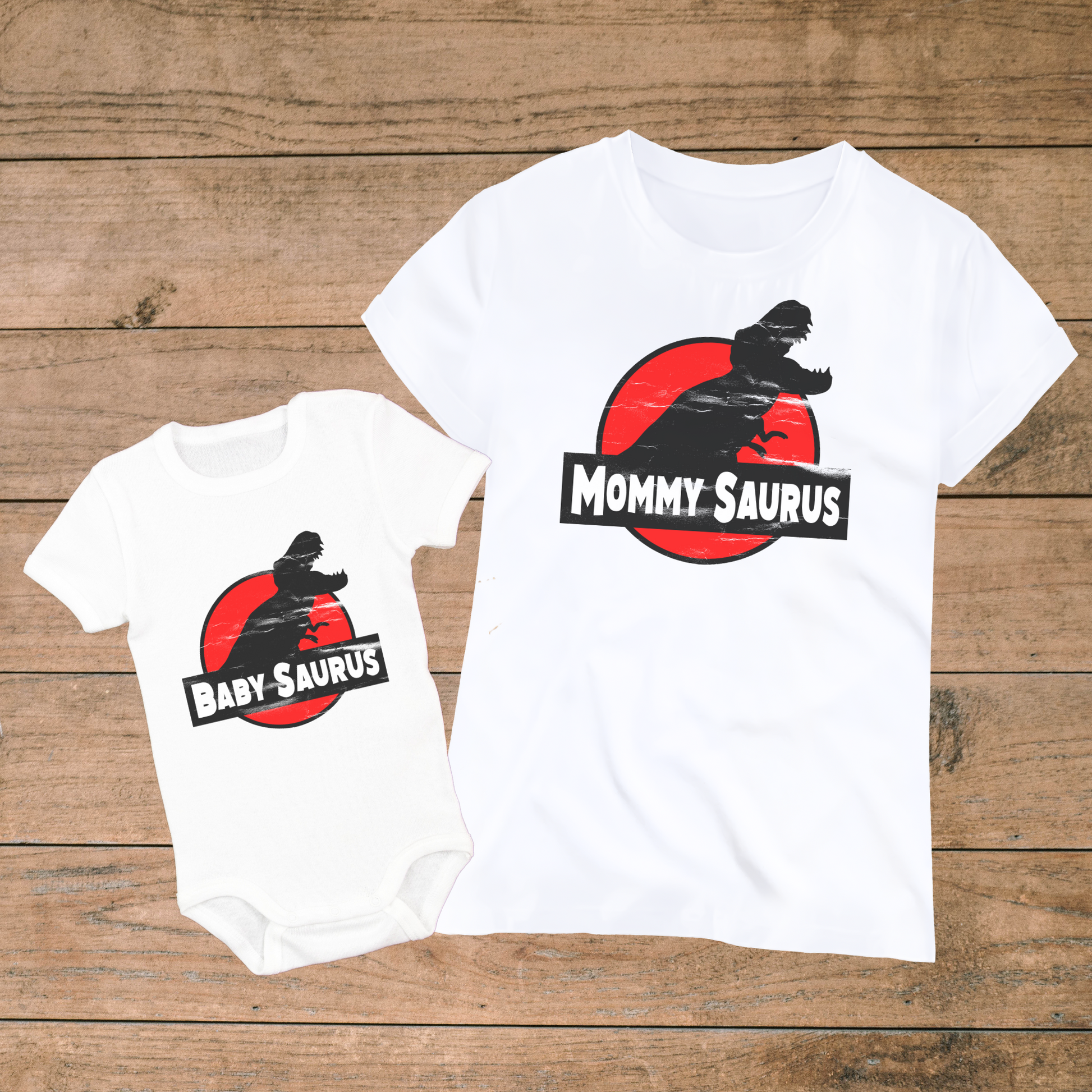 Calling all dinosaur enthusiasts! Transform into the ultimate dino duo with our "Mommy Saurus" and "Baby Saurus" matching set. These comfy cotton tees feature a fun prehistoric print, perfect for channeling your inner T-Rex and creating Jurassic-sized memories.