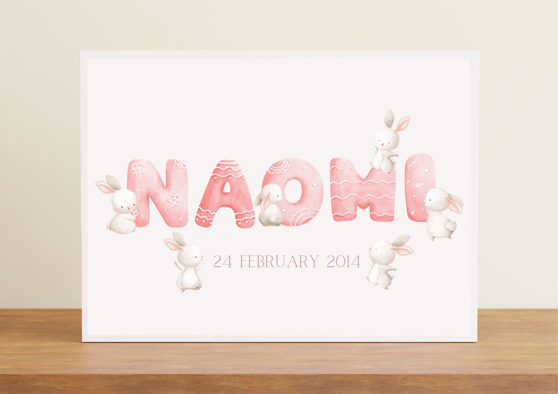 Welcome Your Little One in Style: Personalised Bunny Name Nursery Poster