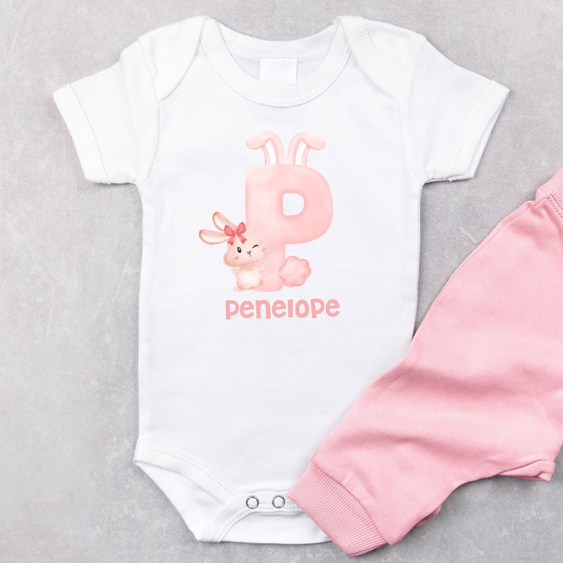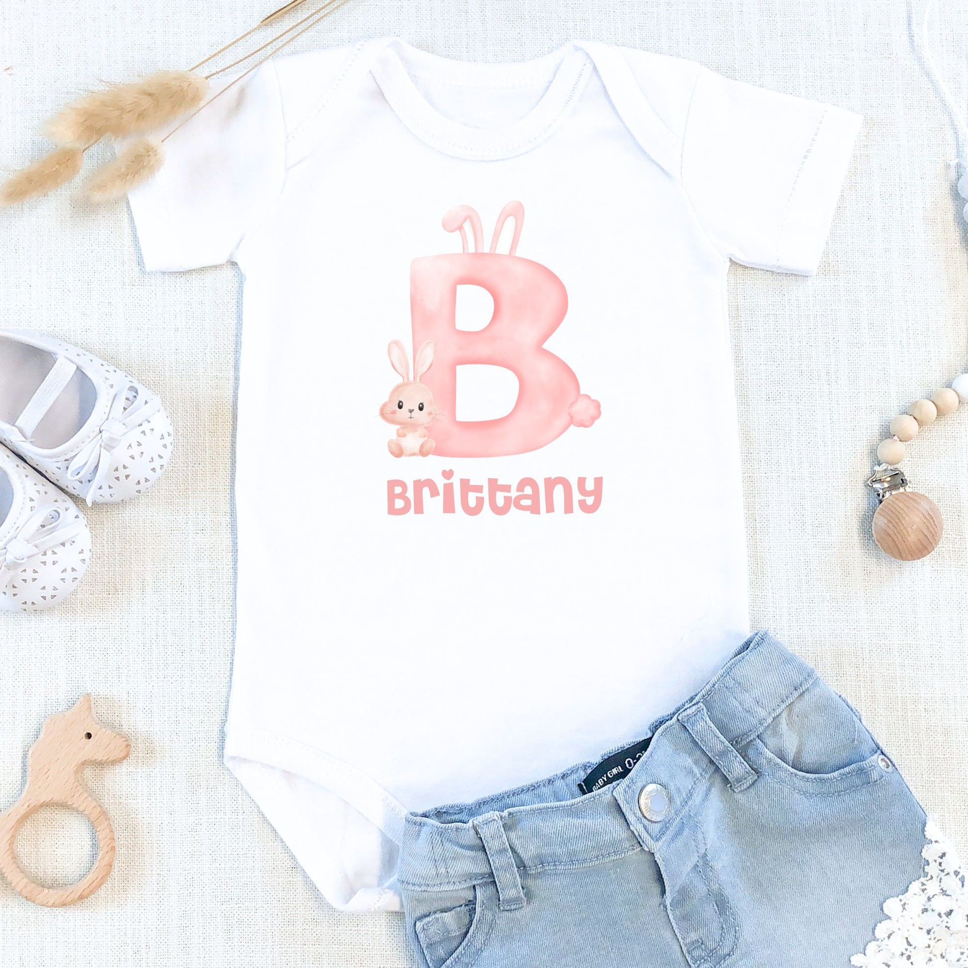Celebrate your baby’s gentle and playful nature with our Personalized Alphabet Rabbit Baby Baby Romper. This adorable romper features an alphabet design with cute bunny illustrations, personalized with your baby’s name for a unique and special touch. Perfect for everyday adventures and special occasions.