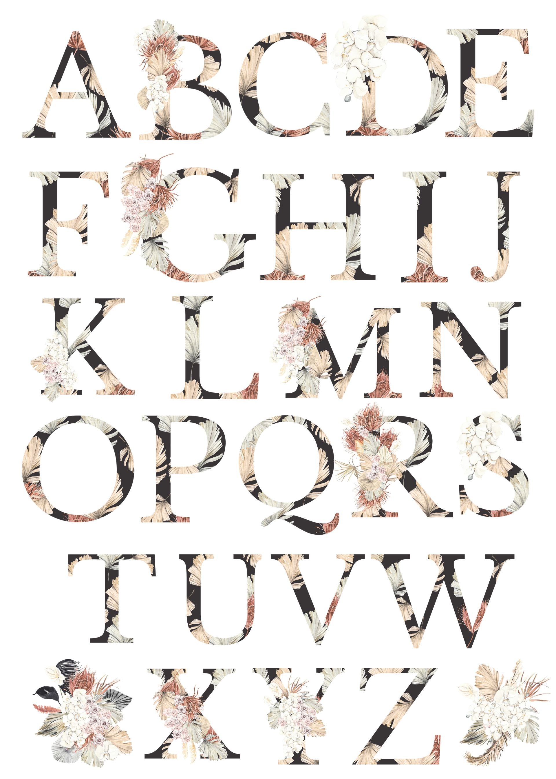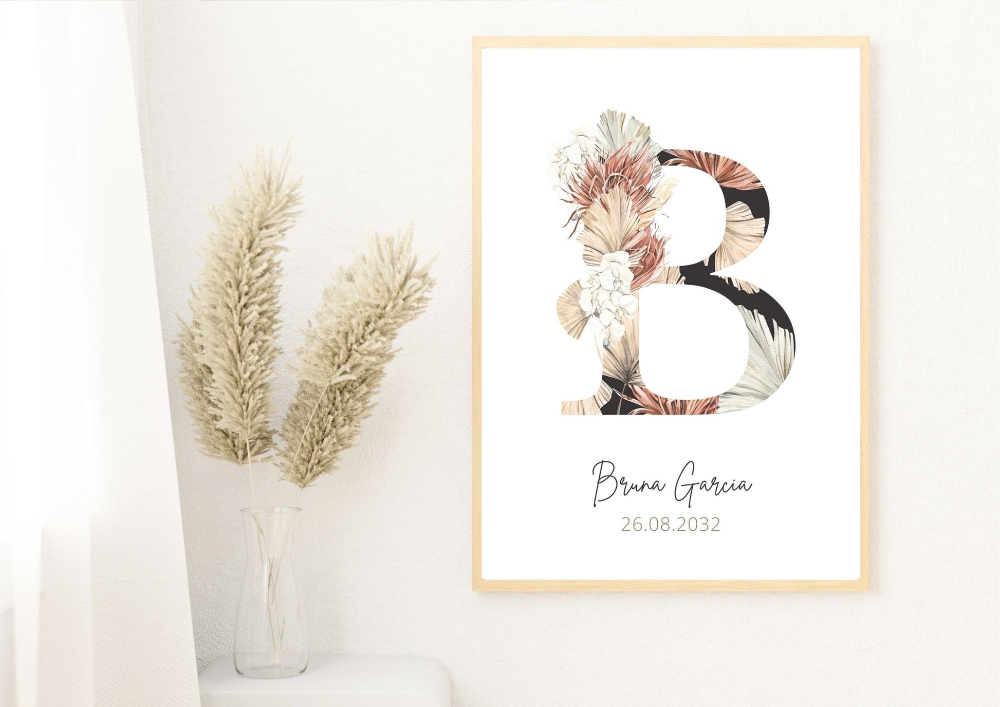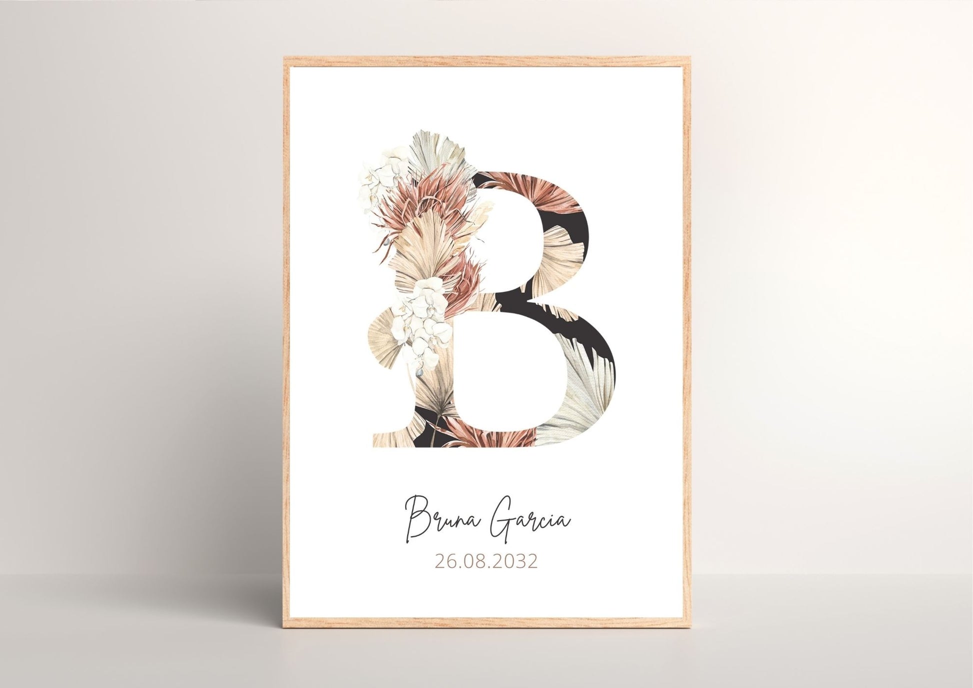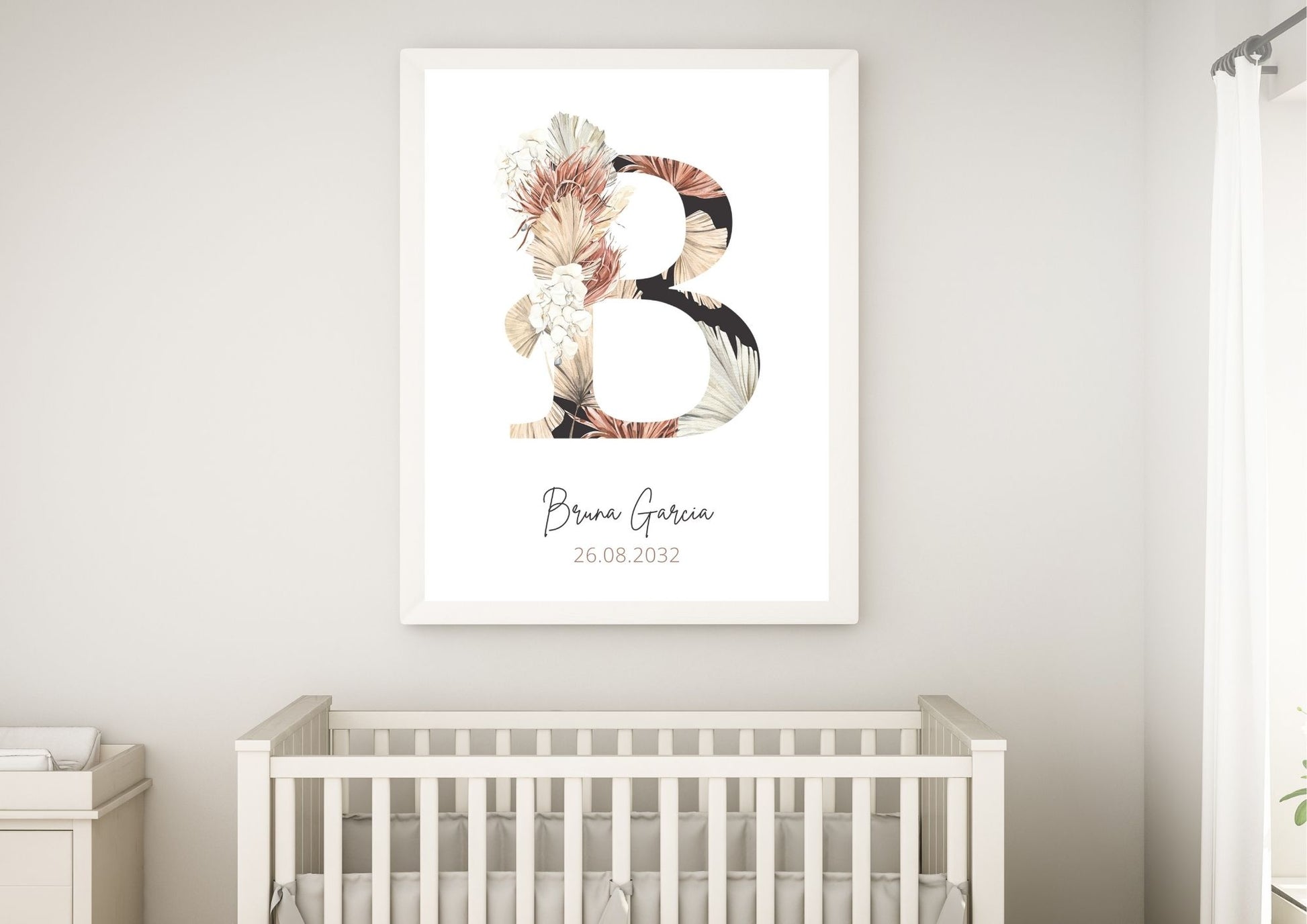 This charming poster features your baby's initial adorned with beautiful blooming flowers. A personalized touch to welcome your little one and add a sweet, floral note to the nursery.