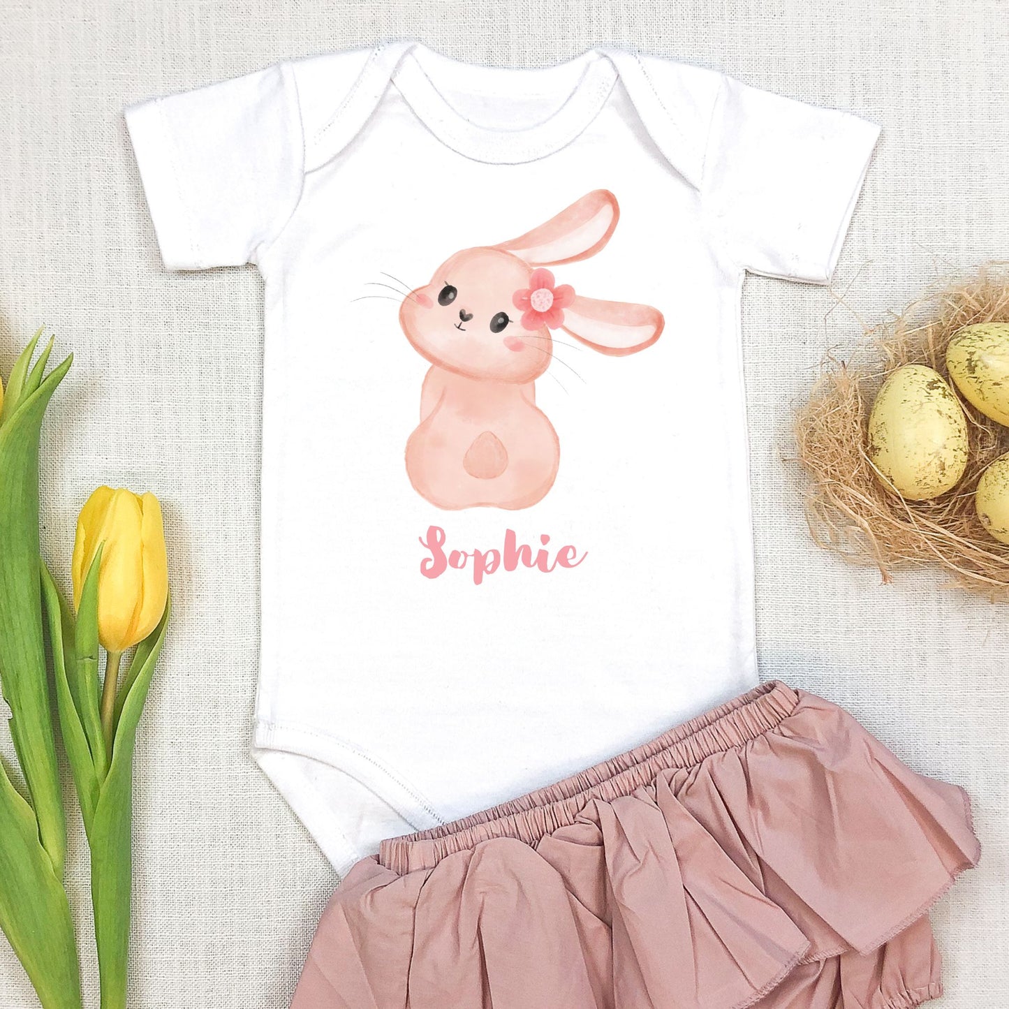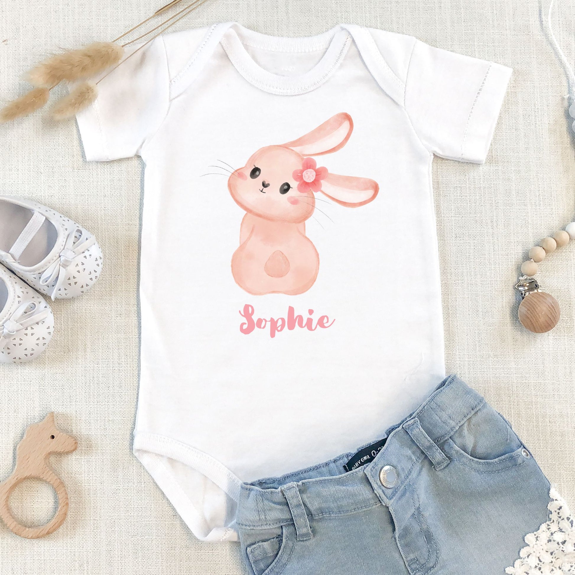 Celebrate your baby’s gentle and playful nature with our Personalized Bunny Love Baby Romper! This adorable romper features a sweet bunny with a flower, beautifully printed alongside your baby’s name, creating a truly unique and special outfit. Perfect for everyday wear, special occasions, and capturing those precious photo moments.