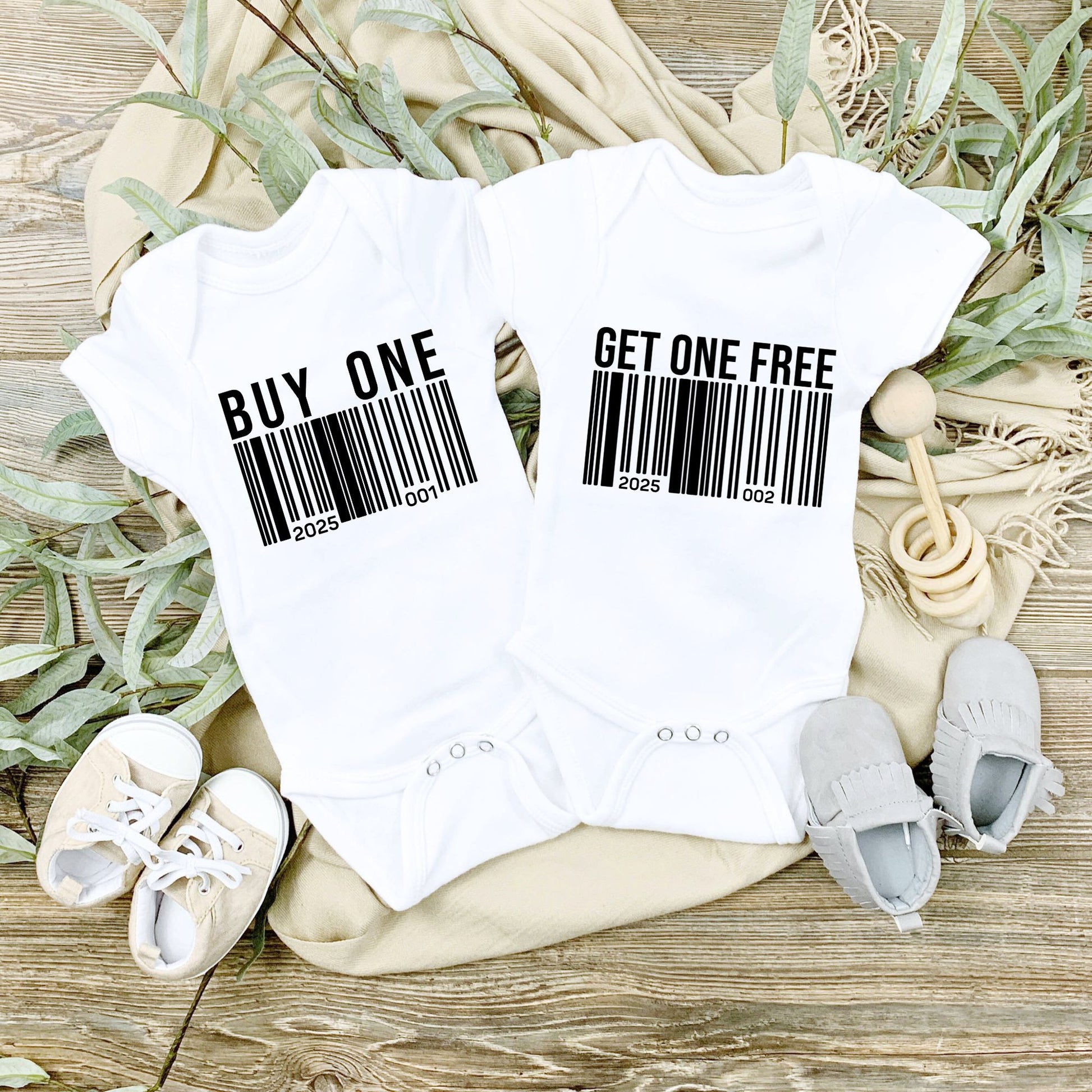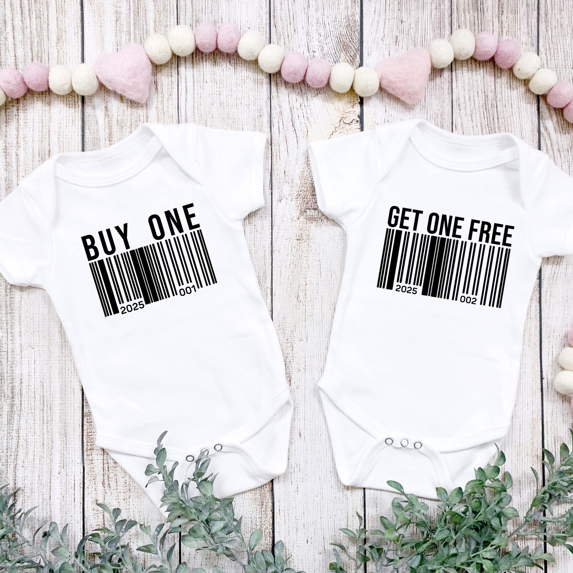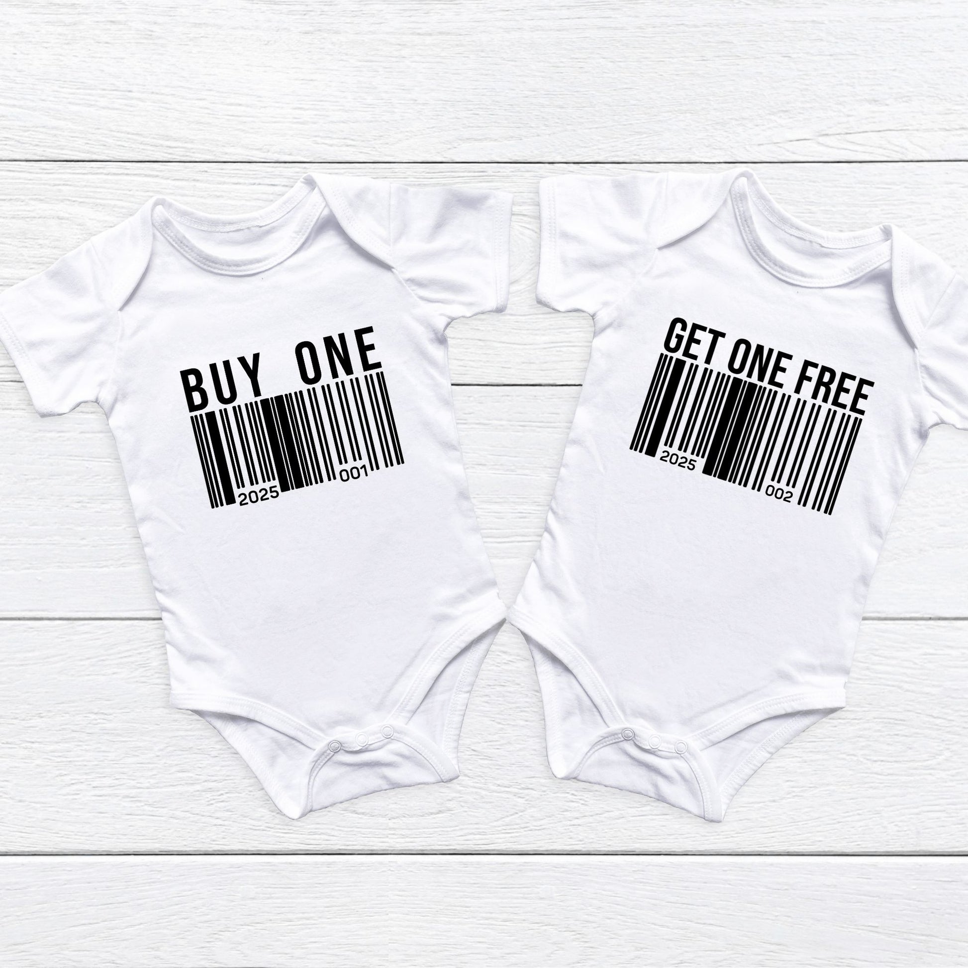 Double the giggles, double the fun—because twins are life’s ultimate BOGO deal! Introducing our "Buy One, Get One Free" Twin Onesie Set, the perfect outfit for your little partners-in-crime. Featuring a playful barcode design, this hilarious set makes a fun statement about the joys of having twins!