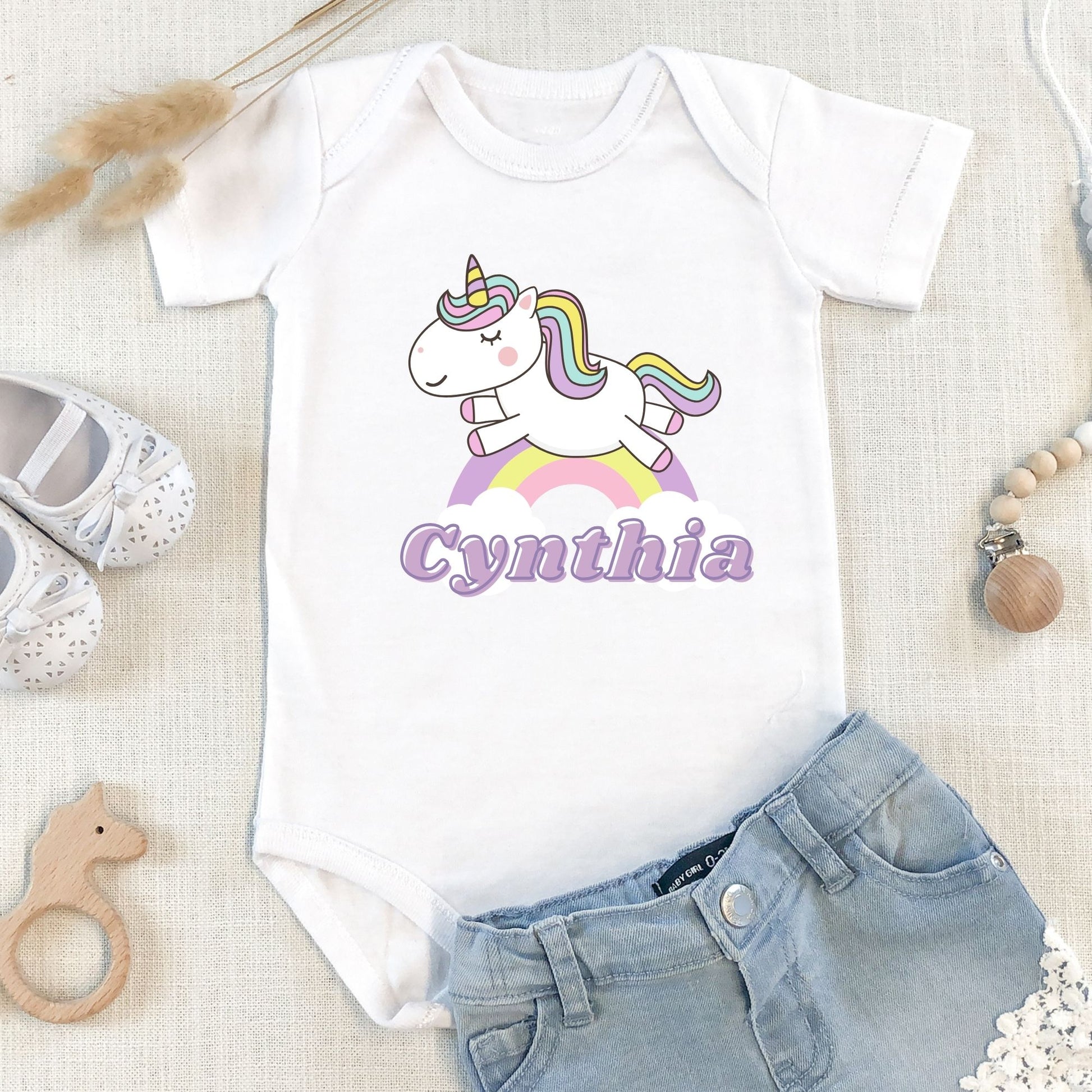 Add a sprinkle of magic to your baby's day with our Enchanted Unicorn Personalized Baby Romper. Featuring a charming unicorn and rainbow design with your baby's name, this romper is ideal for daily play, special events, and magical photo ops.