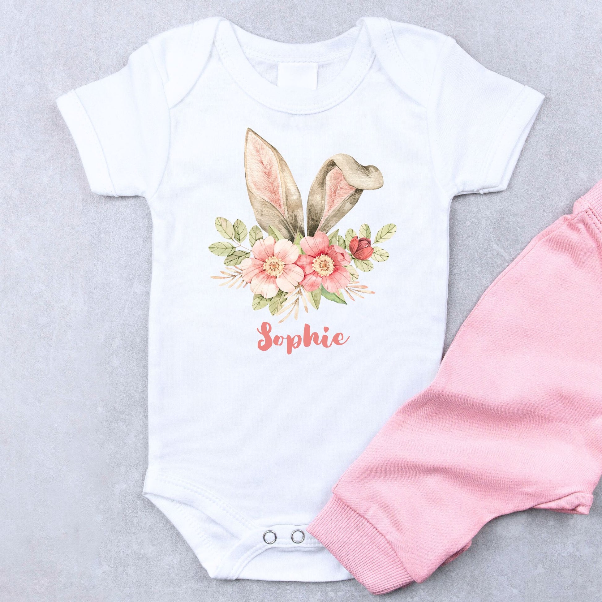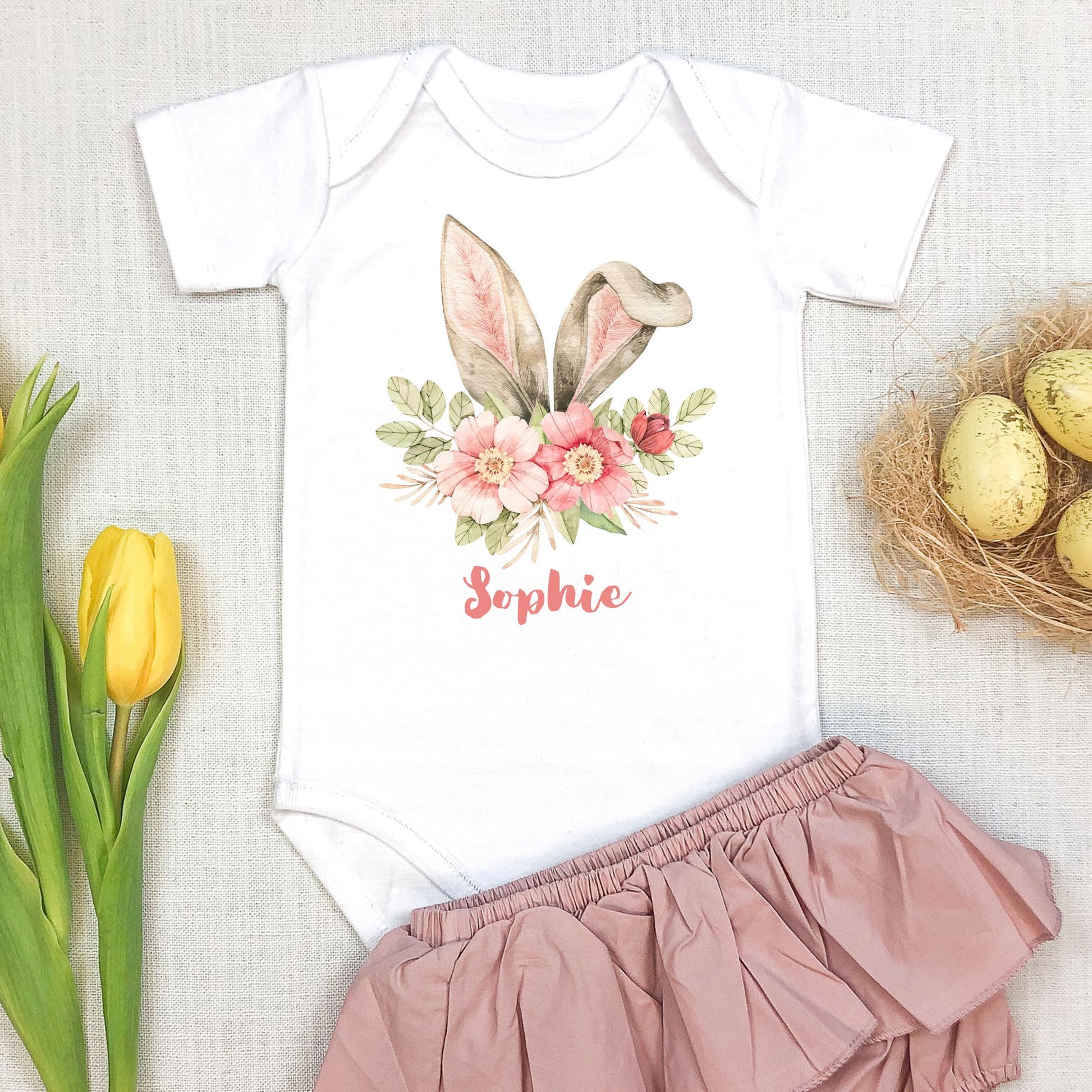Personalized "Floral Bunny Ears" Baby Romper