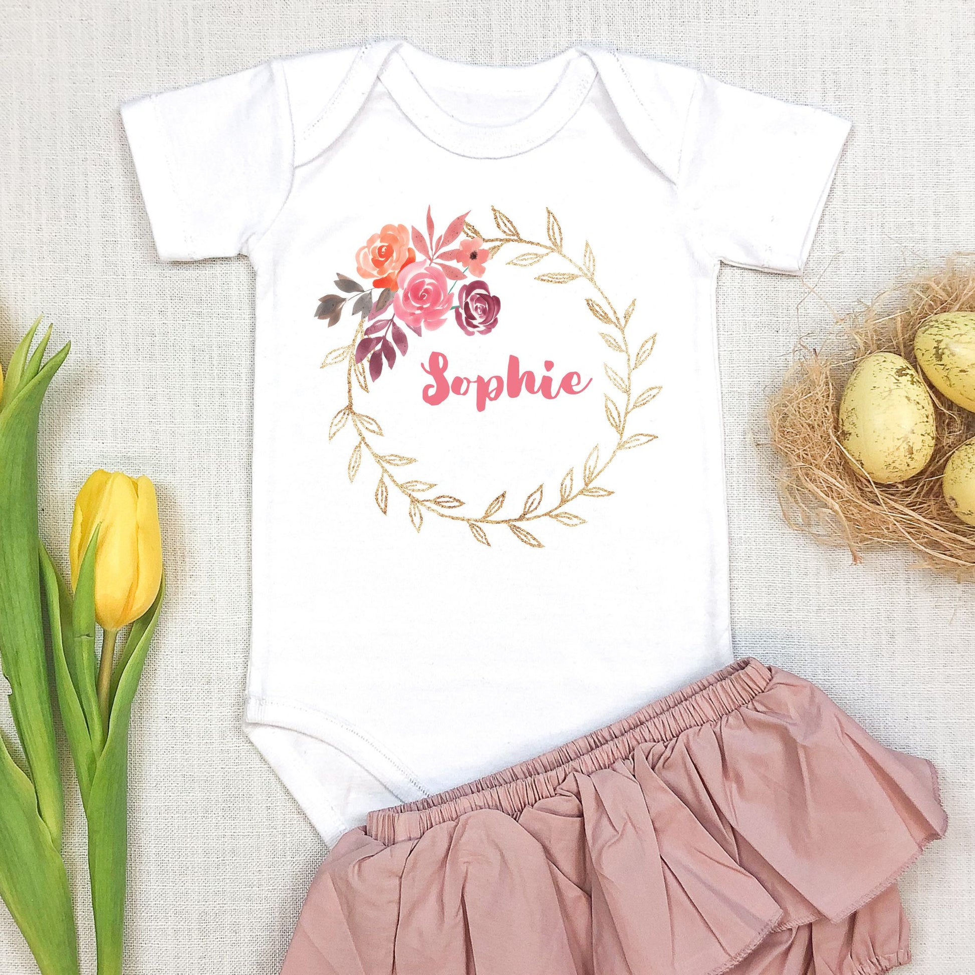 Personalized "Floral Delight" Baby Romper / Baby Tees