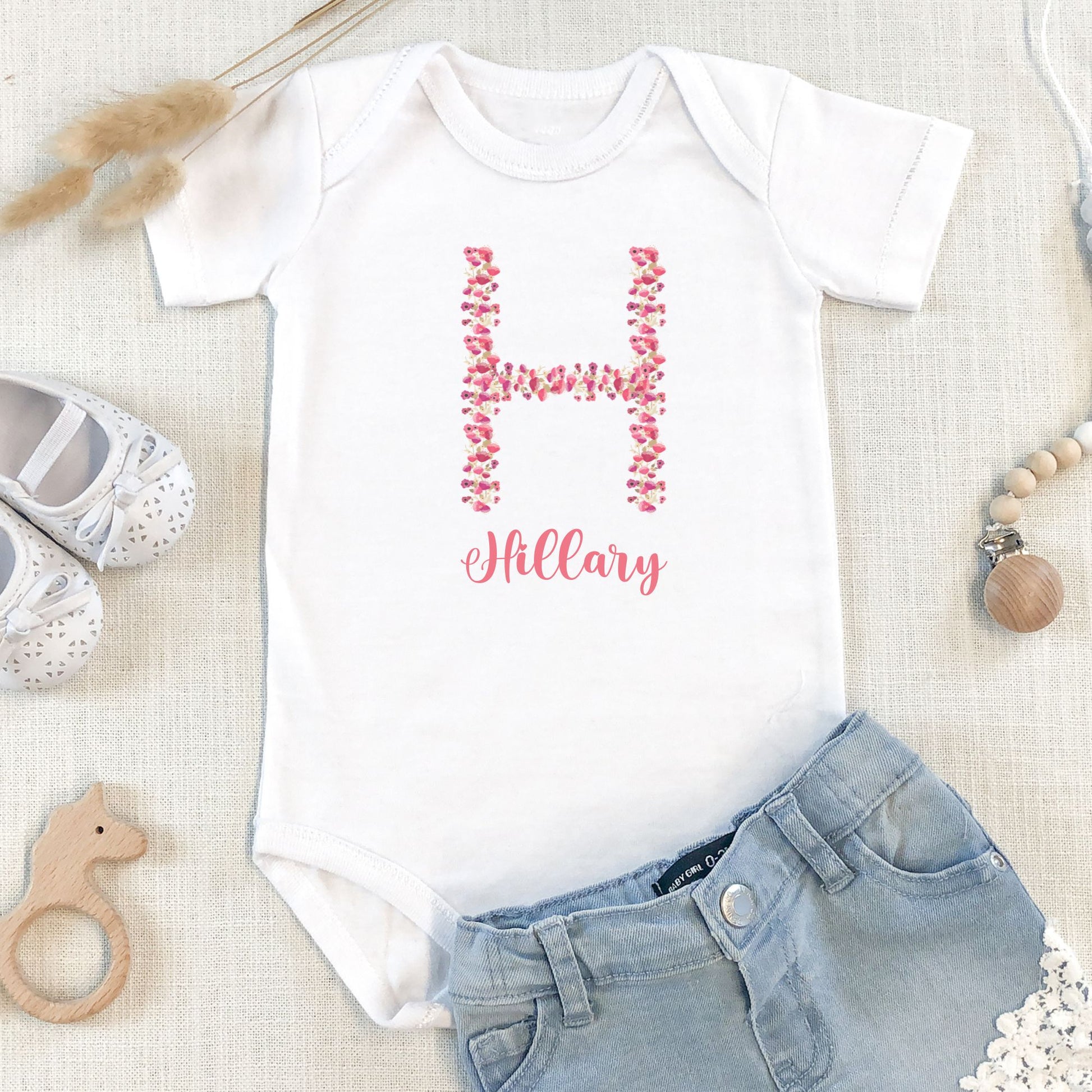 Order now and let your baby's name and personality shine in our "Floral Monogram" romper or tee shirt. Perfect for any day!