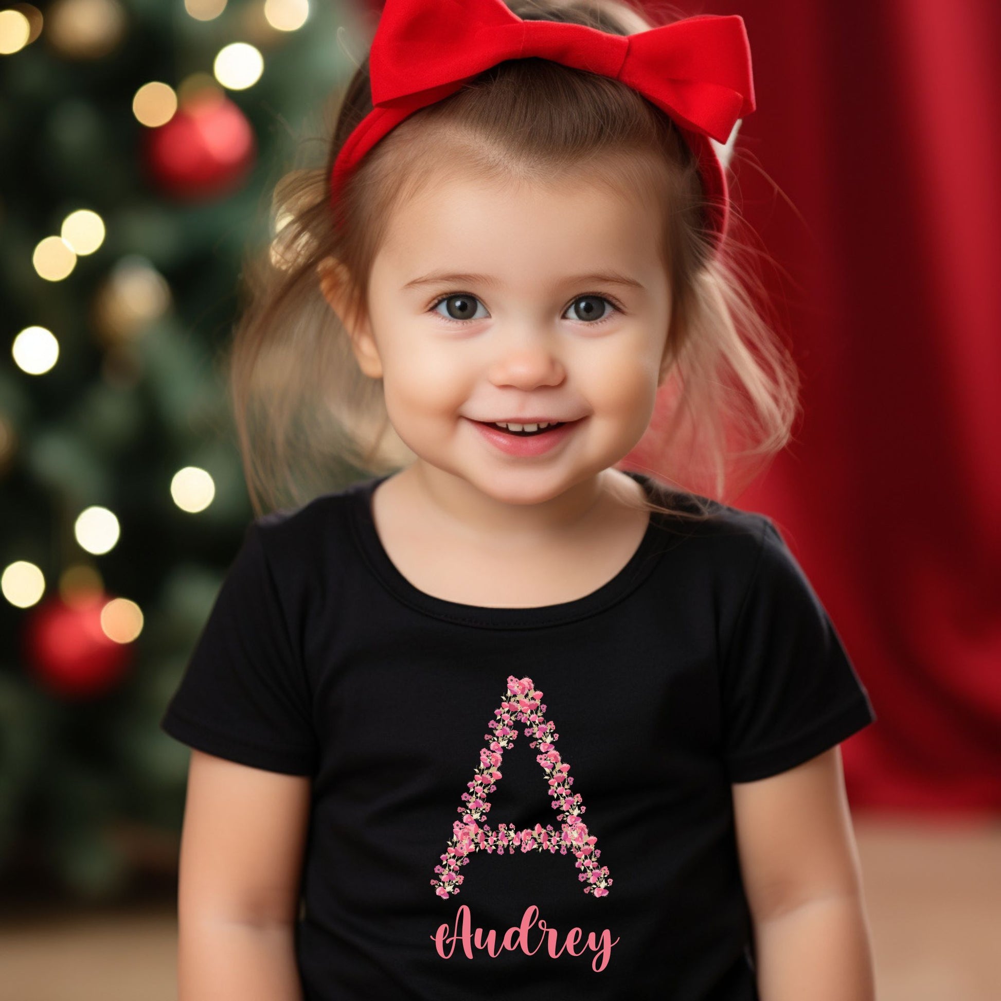 Dress your little one in the delightful Floral Monogram Baby Romper / Tee Shirt. Featuring a large initial in a soft pink font with gorgeous floral decorations and your baby’s name printed below, this romper is the epitome of sweet style.