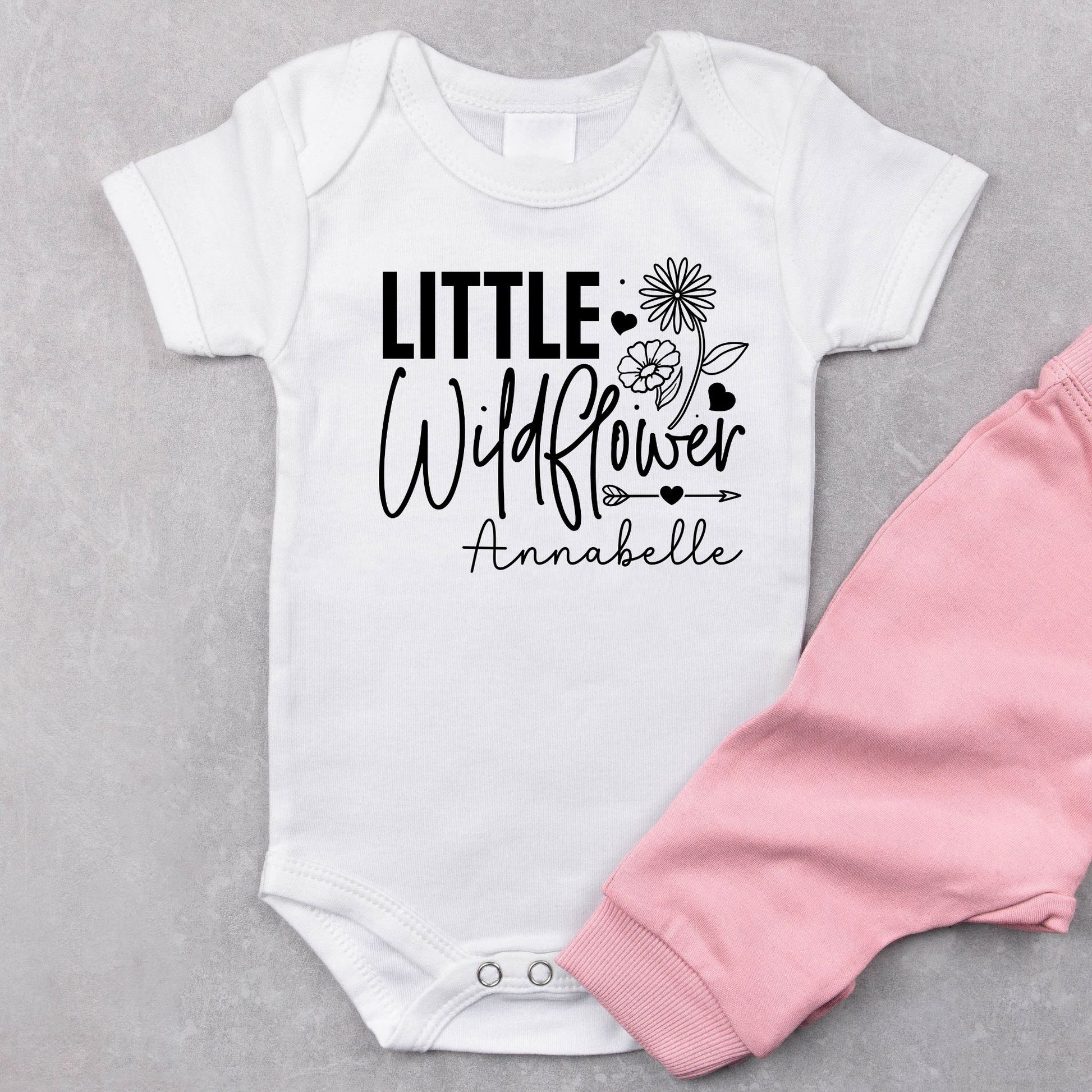 - Print: "Little Wild Flower" in black font with the baby's name below