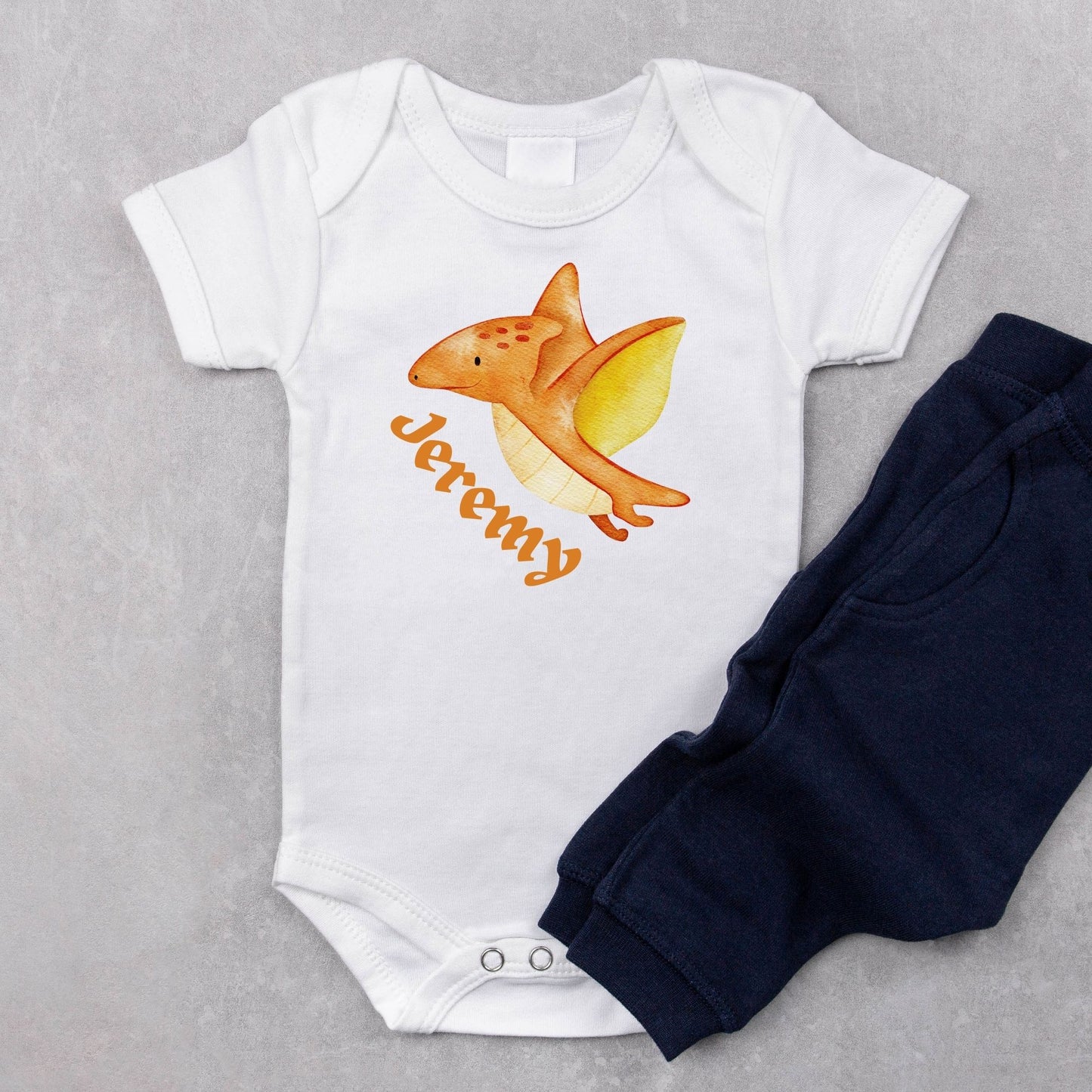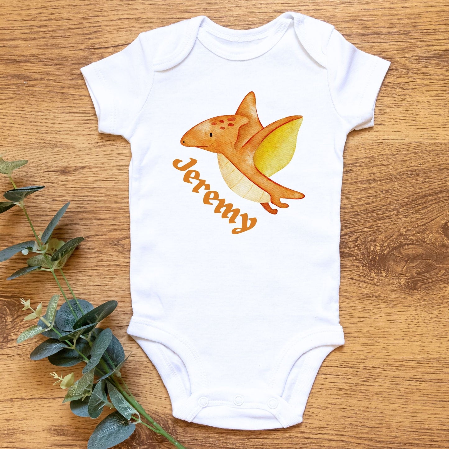 Personalized Name "Fly-High Dino" Dinosaur Onesie Baby Romper