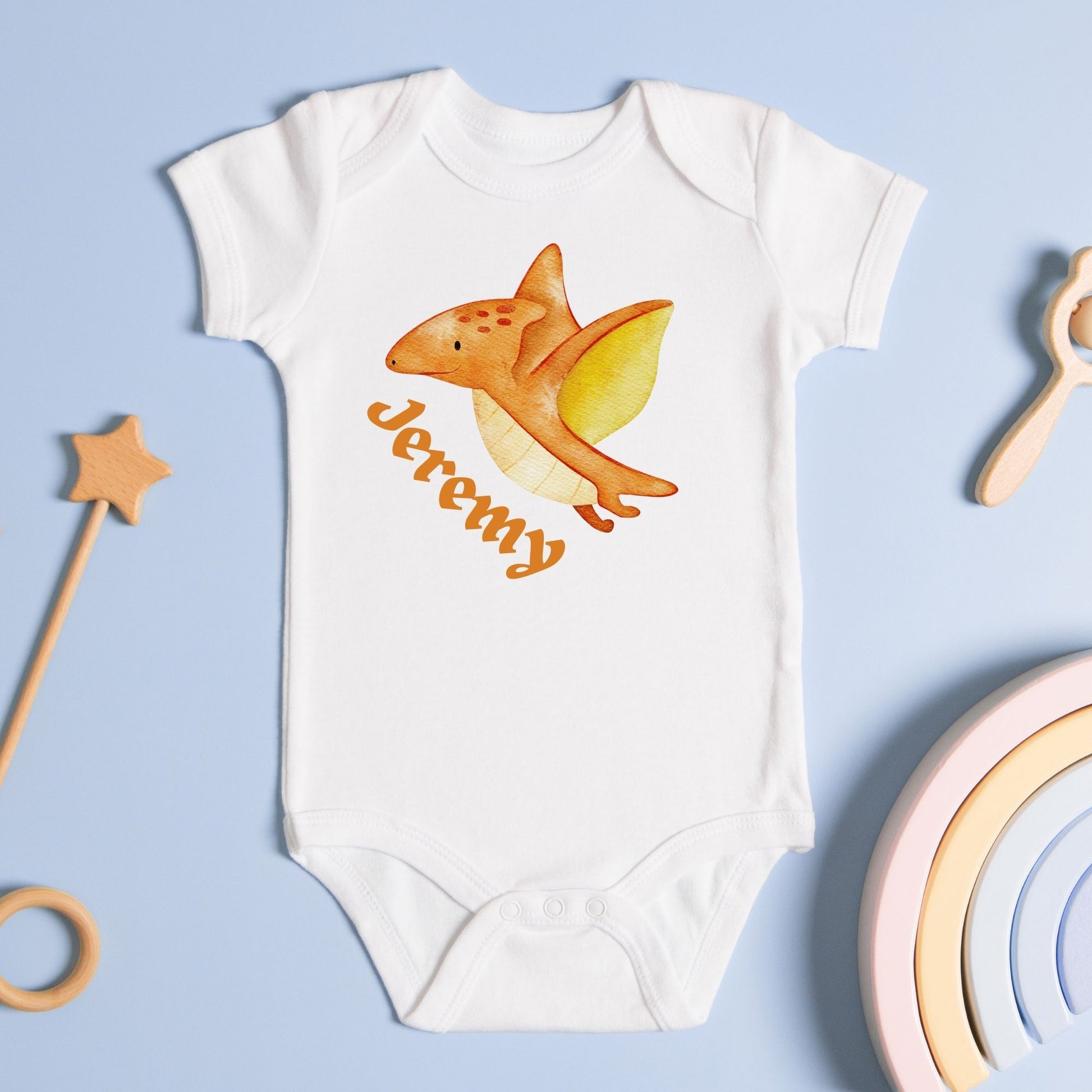 Get ready for some flying fun with our "Fly-High Dino" Personalized Baby Romper!