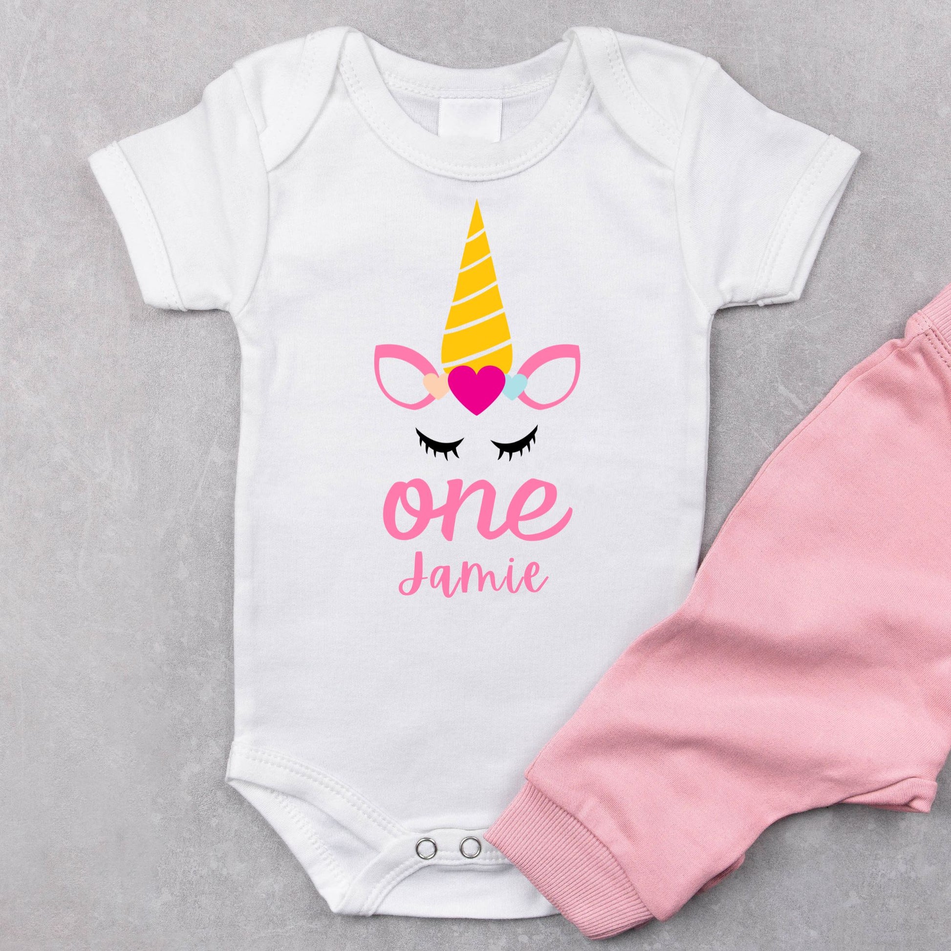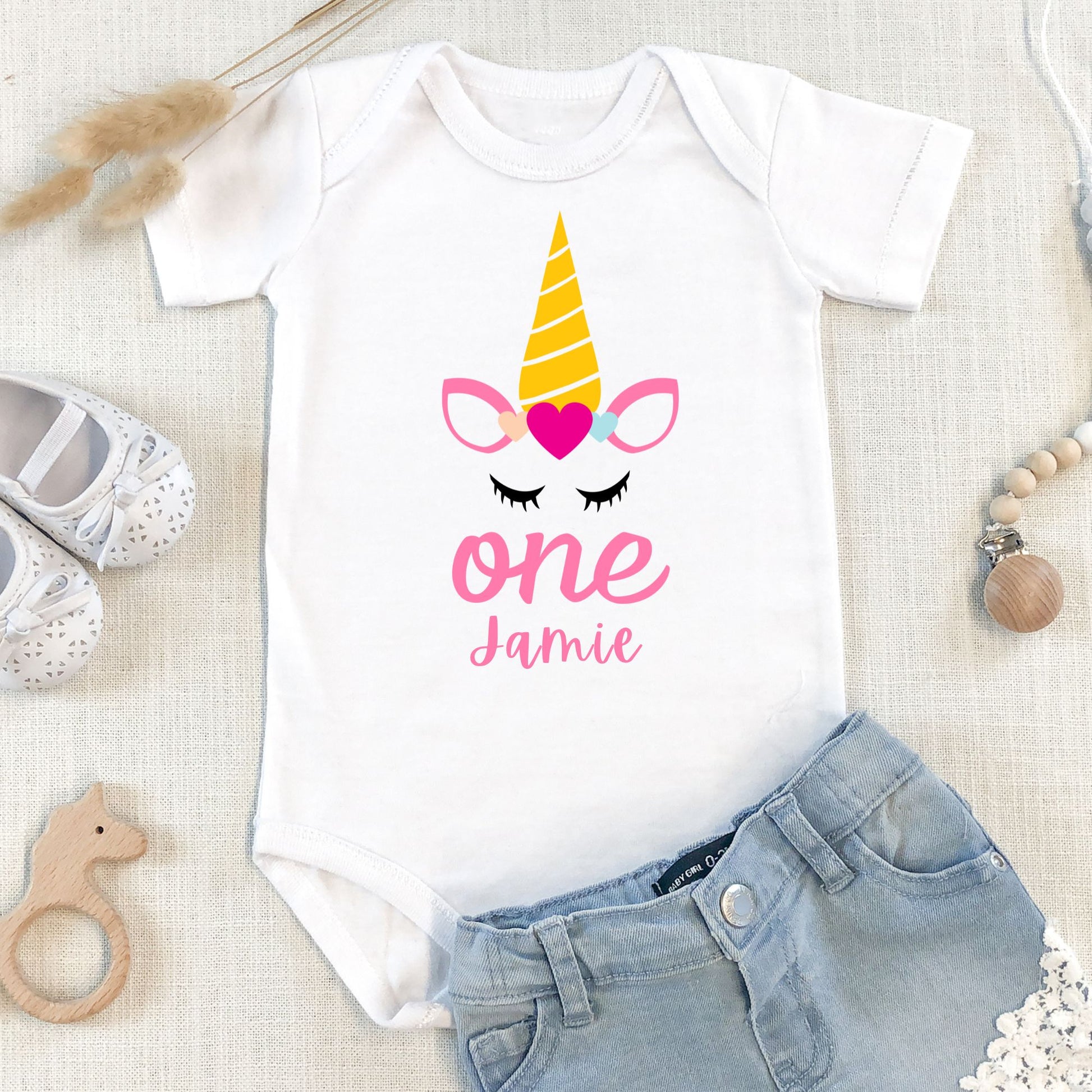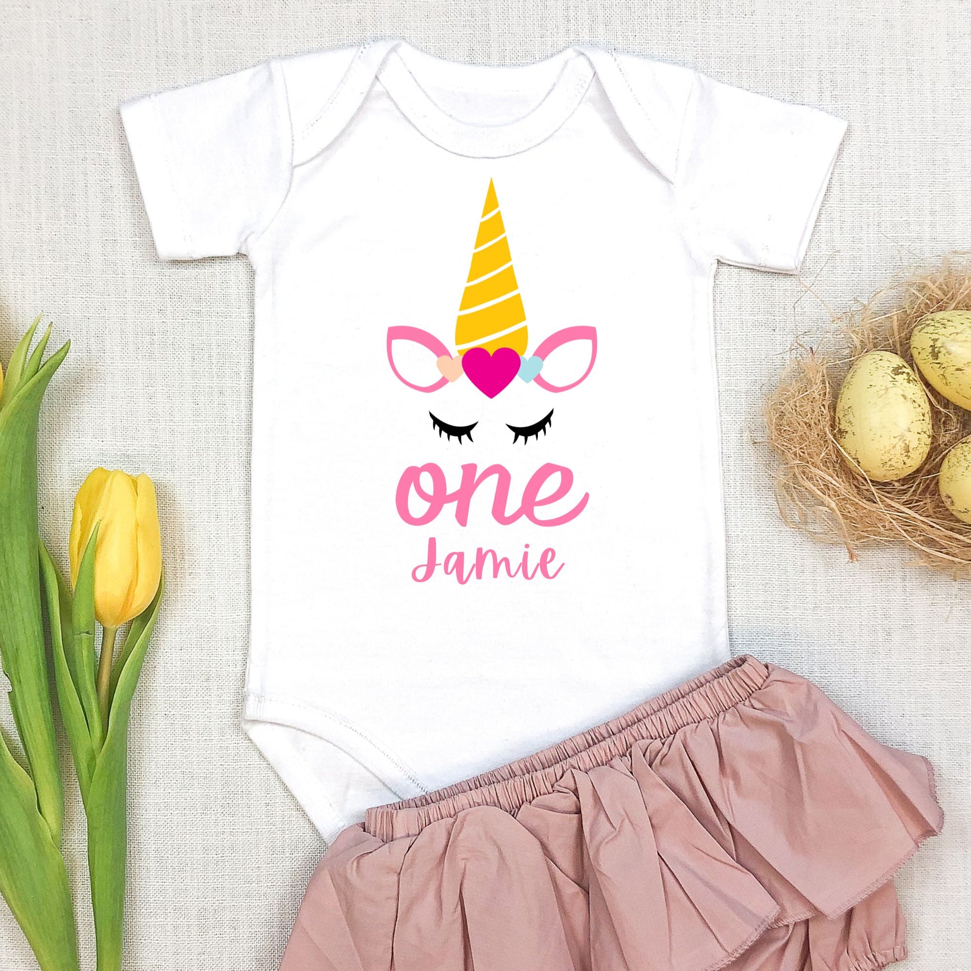 Personalized "One" Princess Unicorn Birthday Baby Romper
