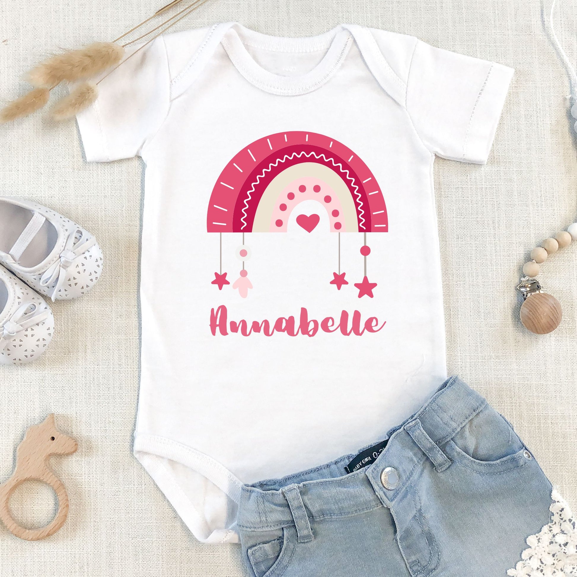 Brighten up your baby’s day with our Personalized Pink Rainbow Baby Romper. Featuring an adorable pink rainbow design with your baby's name, this romper is perfect for everyday adventures, special occasions, and charming photo shoots.