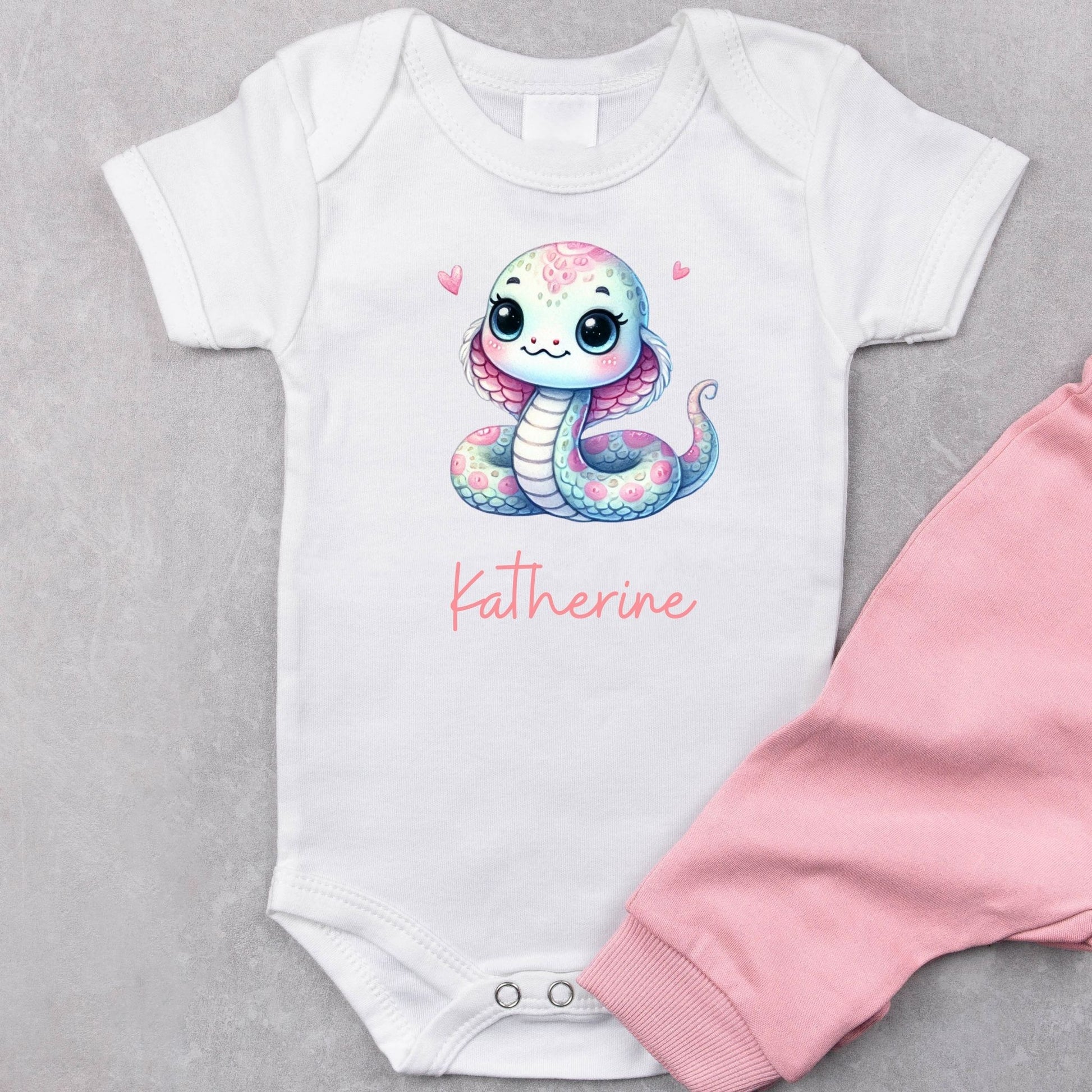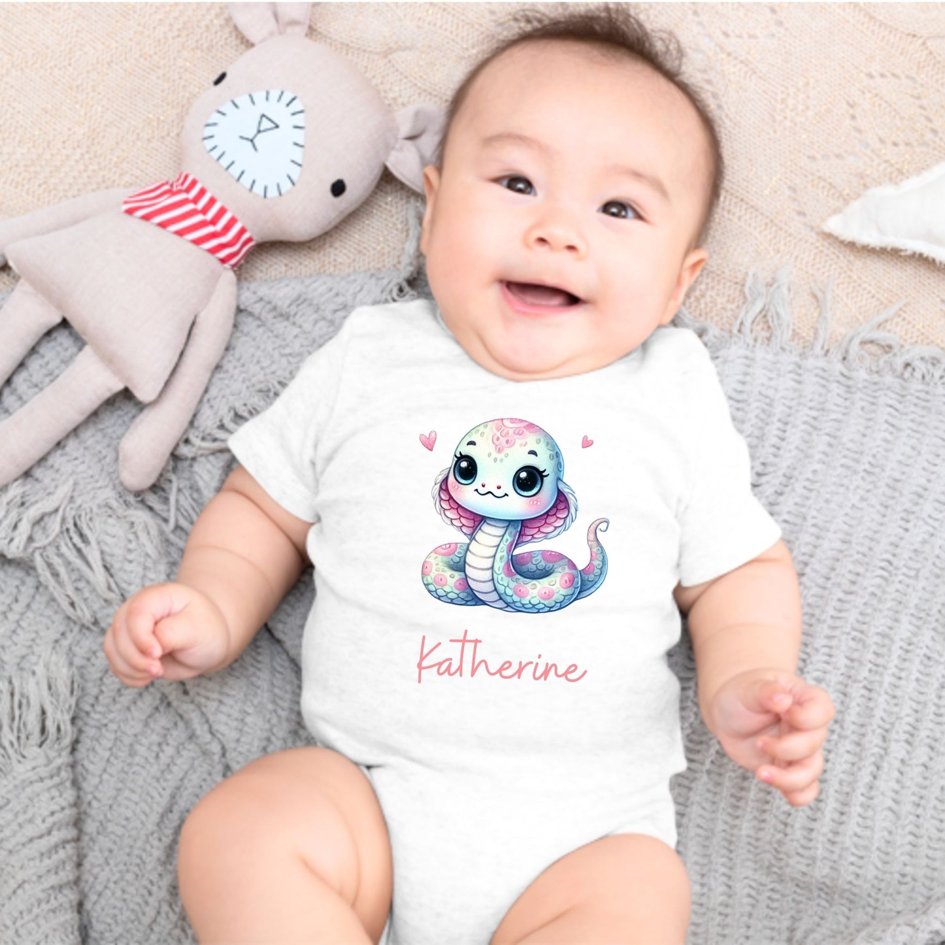Not only is this romper adorable, but it’s also designed with comfort in mind. Made from soft cotton fabric, it ensures your baby stays comfortable while looking stylish. The custom name and snake design make it a lasting keepsake that will be cherished for years.