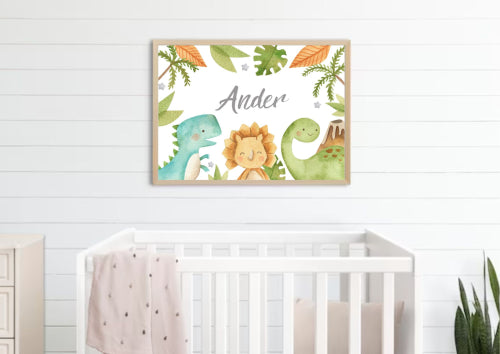 Transform your child's room into a dino-mite adventure with this adorable and unique personalized poster.