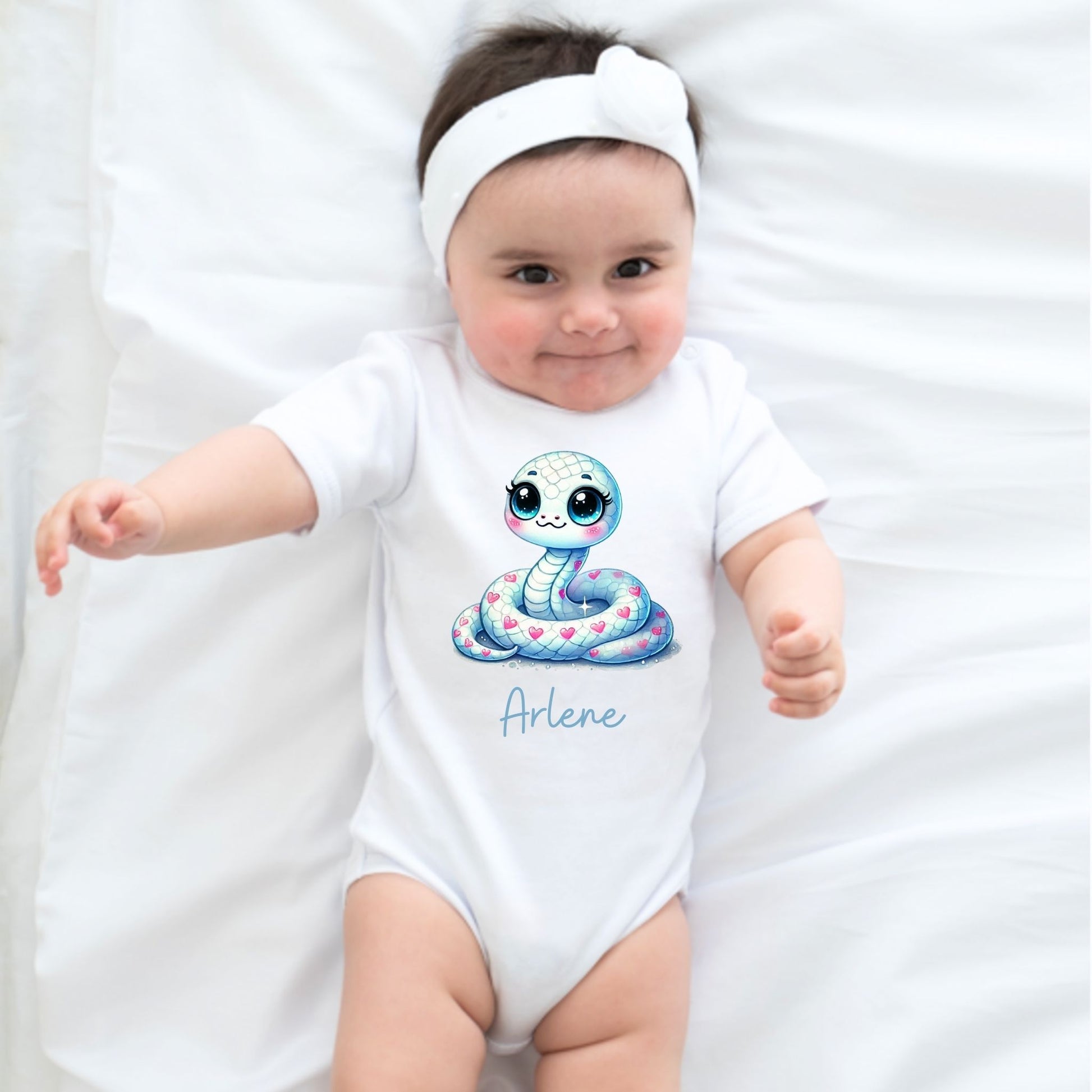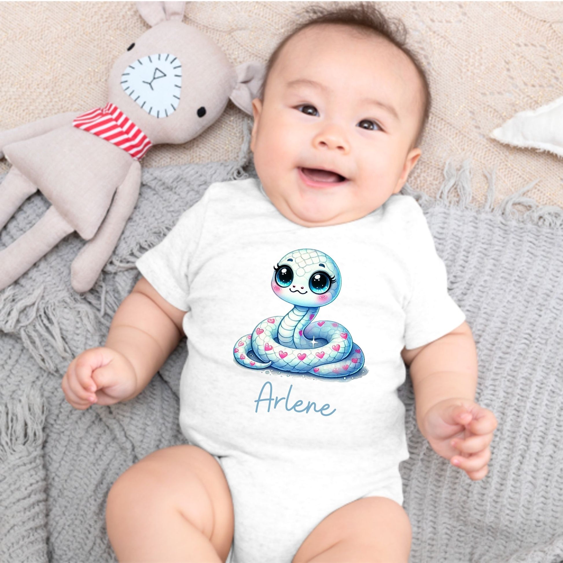 Perfect for a baby girl born in the Year of the Snake, this personalized baby romper combines a cute, playful snake design with your baby’s name, creating a one-of-a-kind gift.
