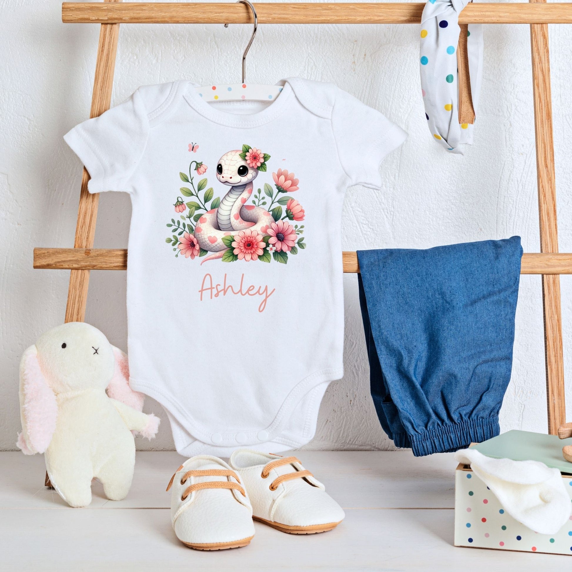 Perfect for baby girls born in the Year of the Snake, this sweet personalized baby romper features a charming snake design and can be customized with your baby’s name. A great gift for baby showers or birthdays, it’s a keepsake parents will treasure for years to come.