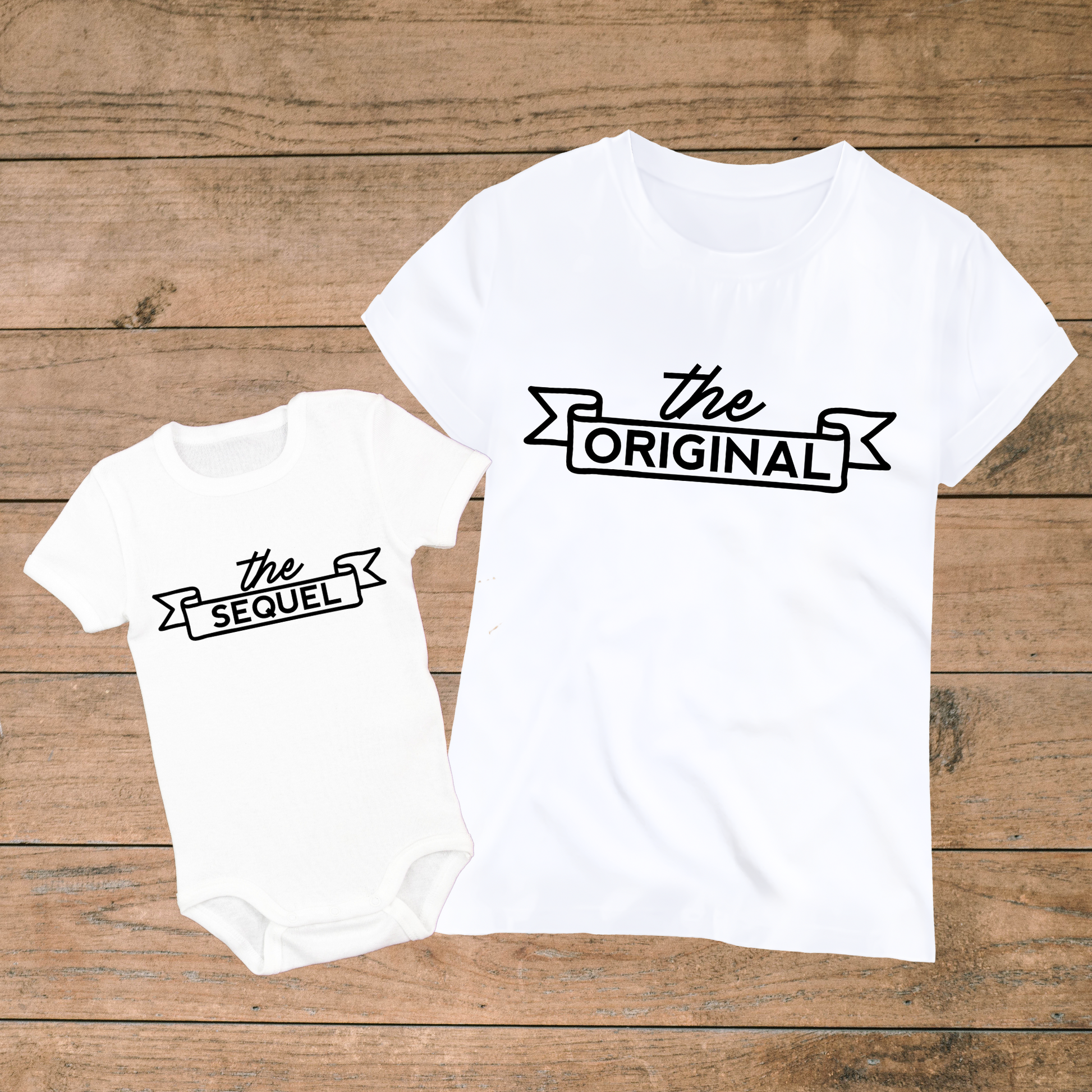 Twin in style with "The Original" and "The Sequel" matching mom and baby outfits! These adorable and comfy tees are the perfect way to showcase your unbreakable bond, whether you're exploring the world together or simply relaxing at home.