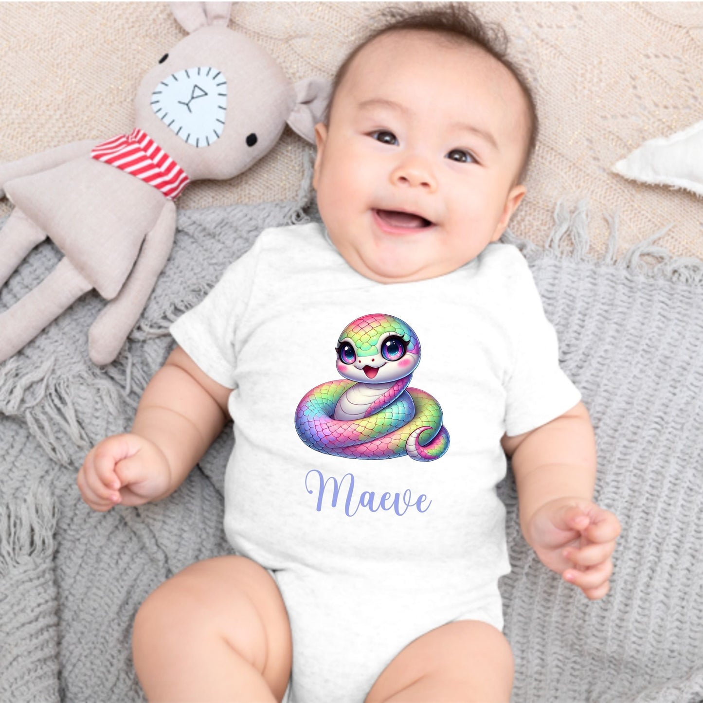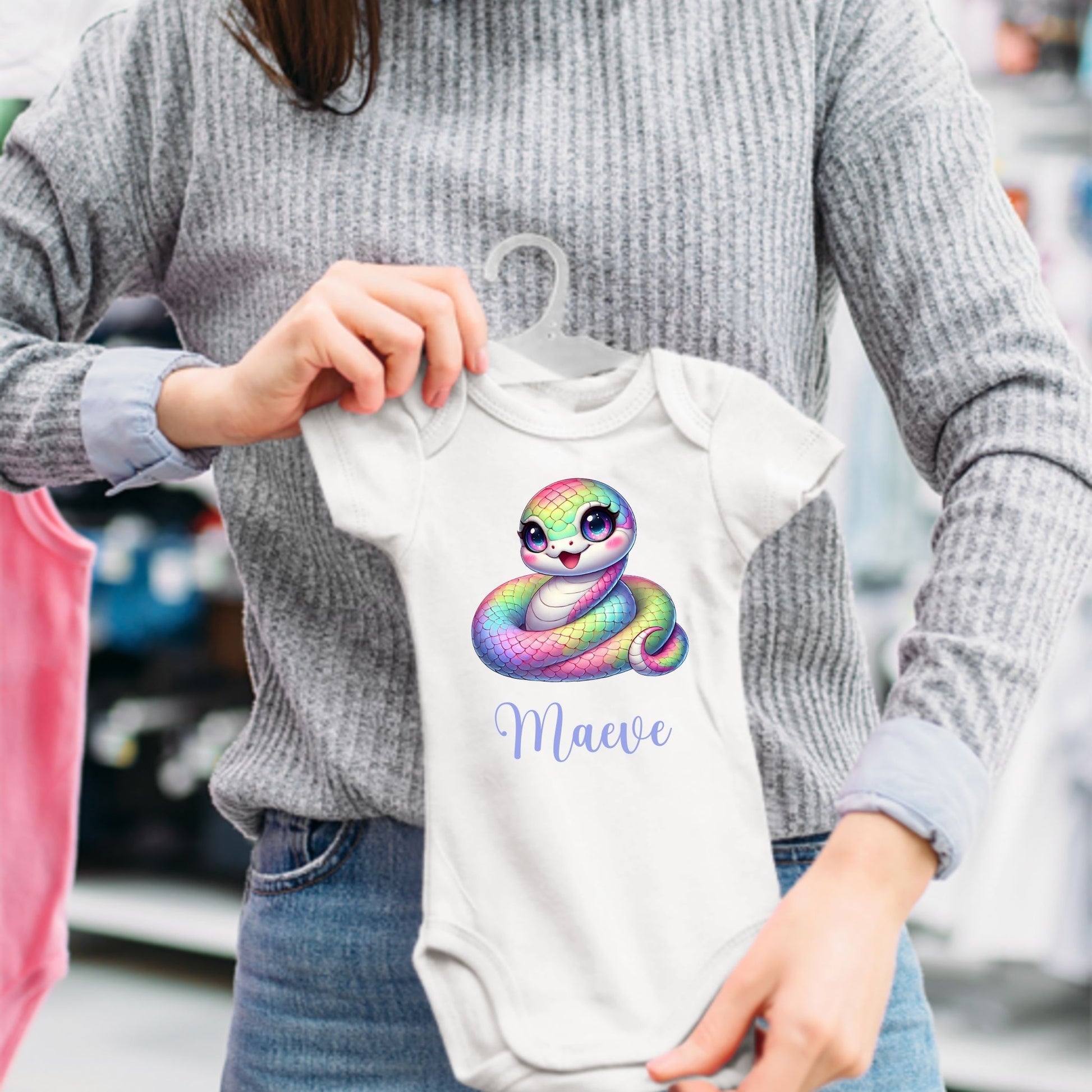 Make a statement with our Tiny Viper Vibes romper, where sass meets softness. This design features a bold snake-inspired print, softened by bright baby-friendly colours. Crafted from 100% cotton, this baby romper is perfect for baby's skin and ensures your baby feels as great as she looks.